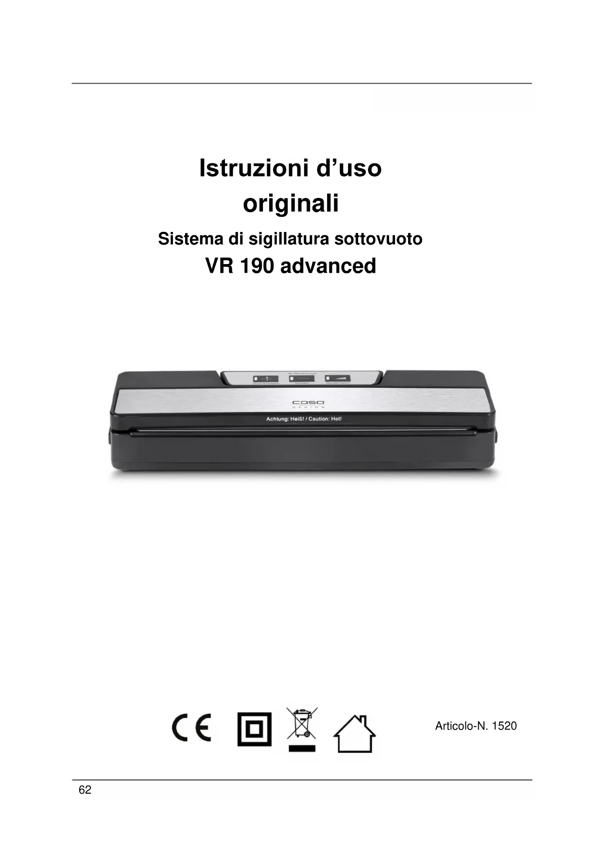 VR 190 advanced - Macchine per confezionamento sottovuoto CASO - Manuale utente e istruzioni gratuiti
