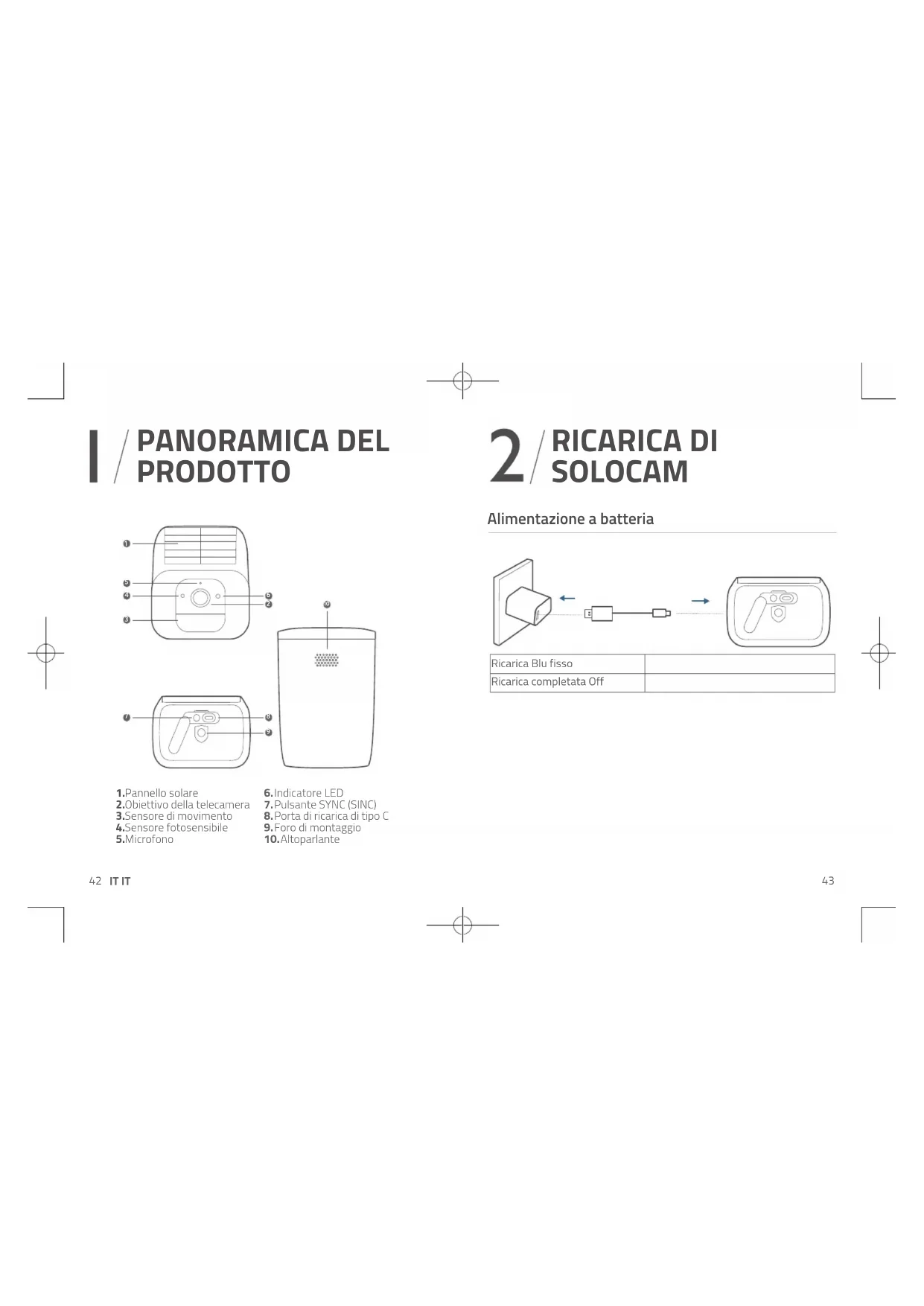 RICARICA DI SOLOCAM Alimentazione a batteria Ricarica Blu fisso Ricarica completata Off44 IT IT