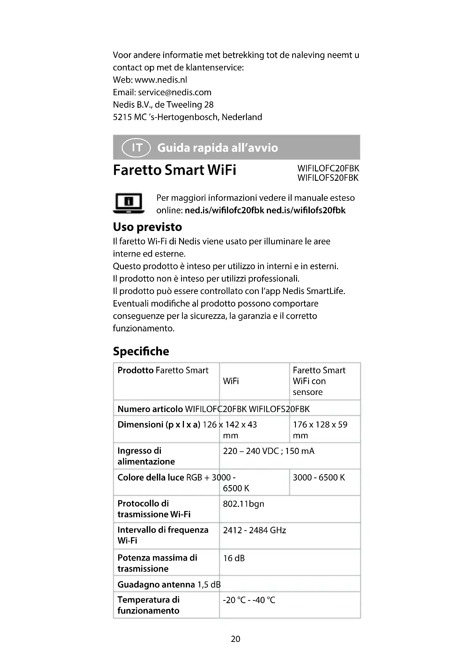 Trova gratuitamente il manuale del dispositivo WIFILOFS20FBK NEDIS in formato PDF.