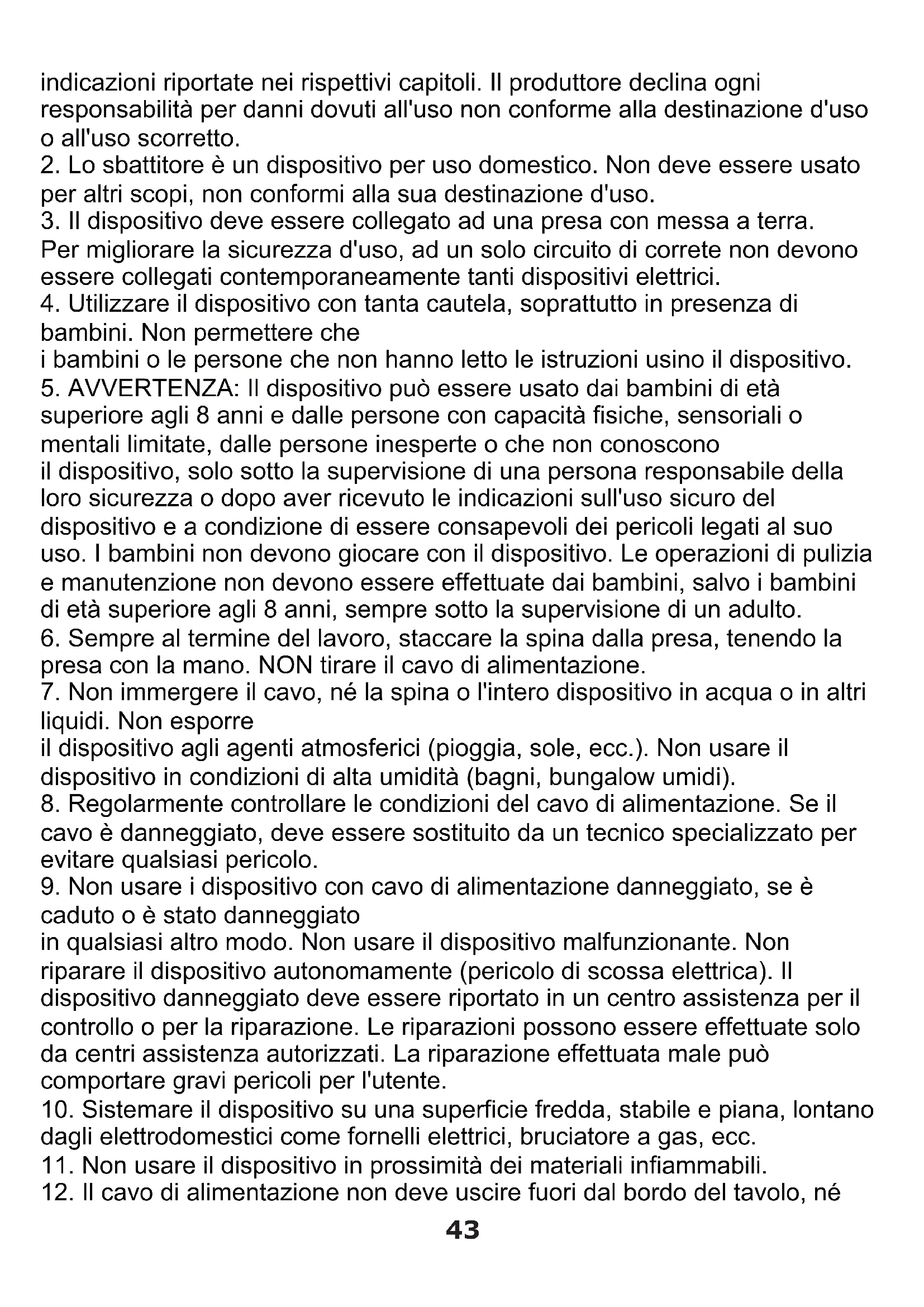 2. Lo sbattitore è un dispositivo per uso domestico. Non deve essere usato