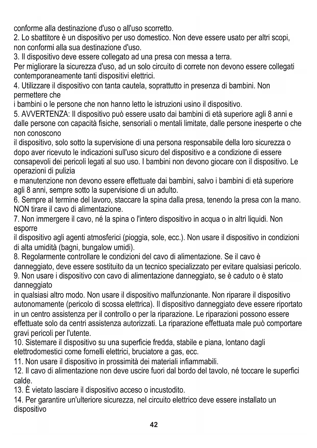 2. Lo sbattitore è un dispositivo per uso domestico. Non deve essere usato per altri scopi,