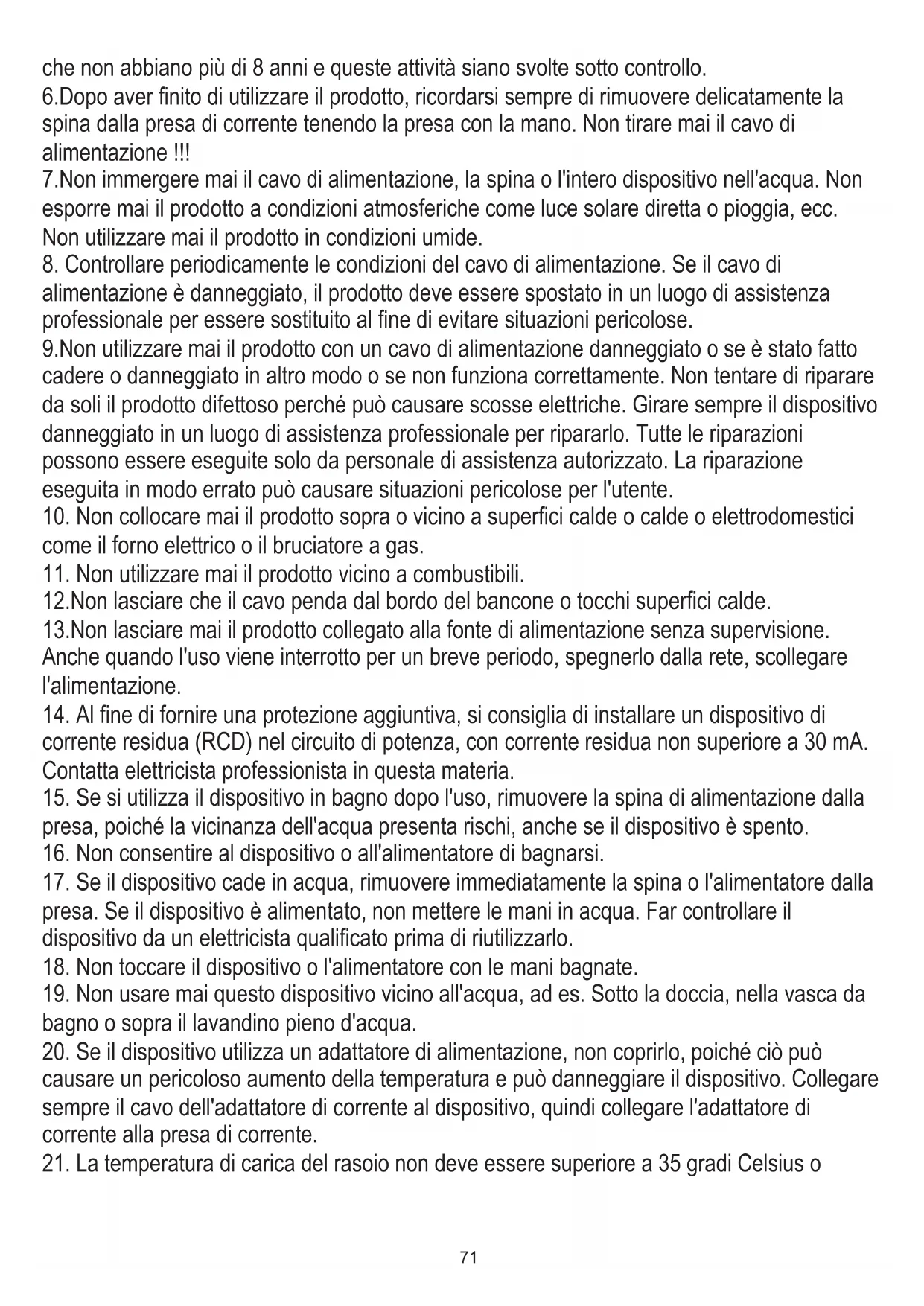 21. La temperatura di carica del rasoio non deve essere superiore a 35 gradi Celsius o72