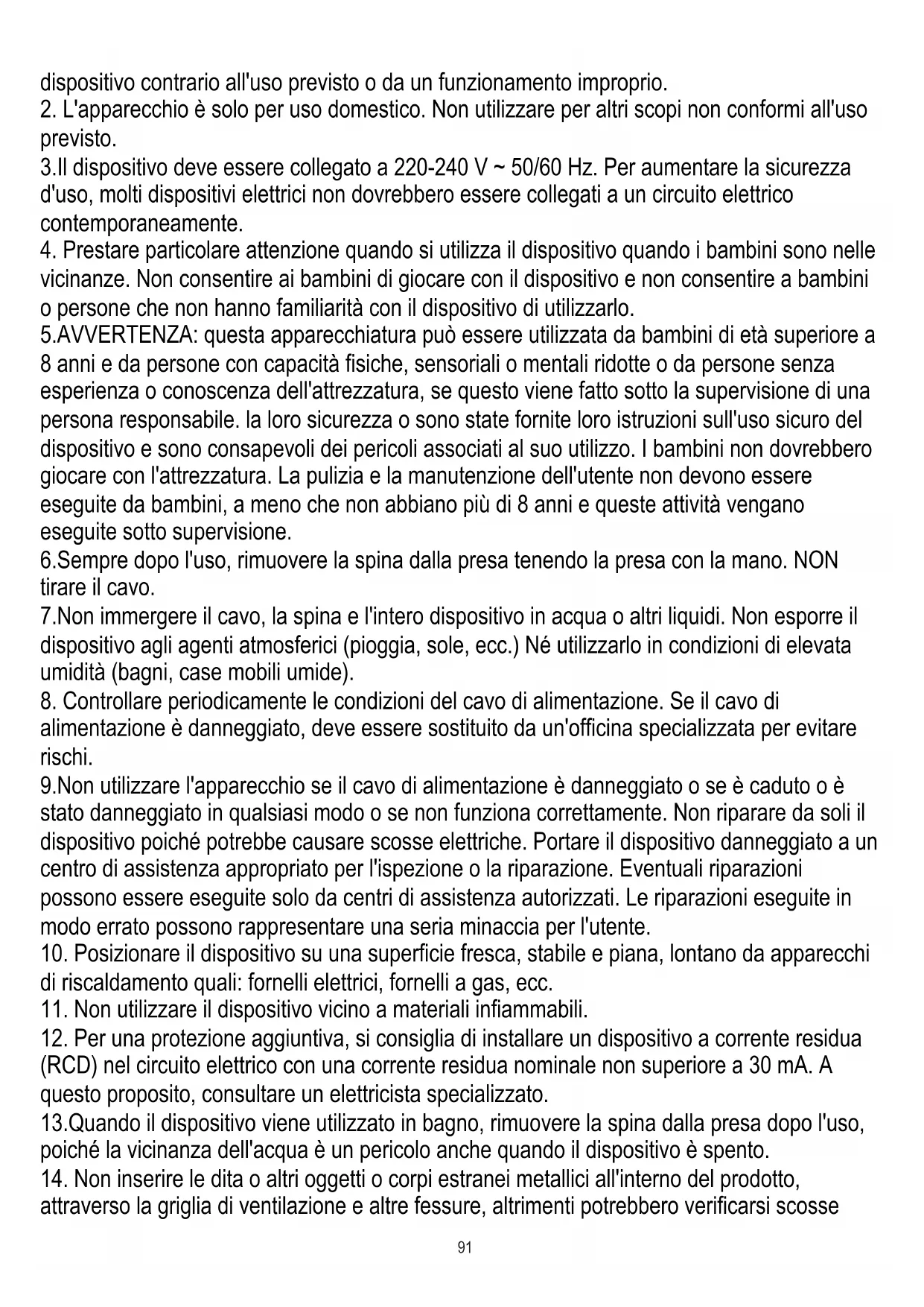 previsto. 3.Il dispositivo deve essere collegato a 220-240 V ~ 50/60 Hz. Per aumentare la sicurezza d'uso, molti dispositivi elettrici non dovrebbero essere collegati a un circuito elettrico contemporaneamente.