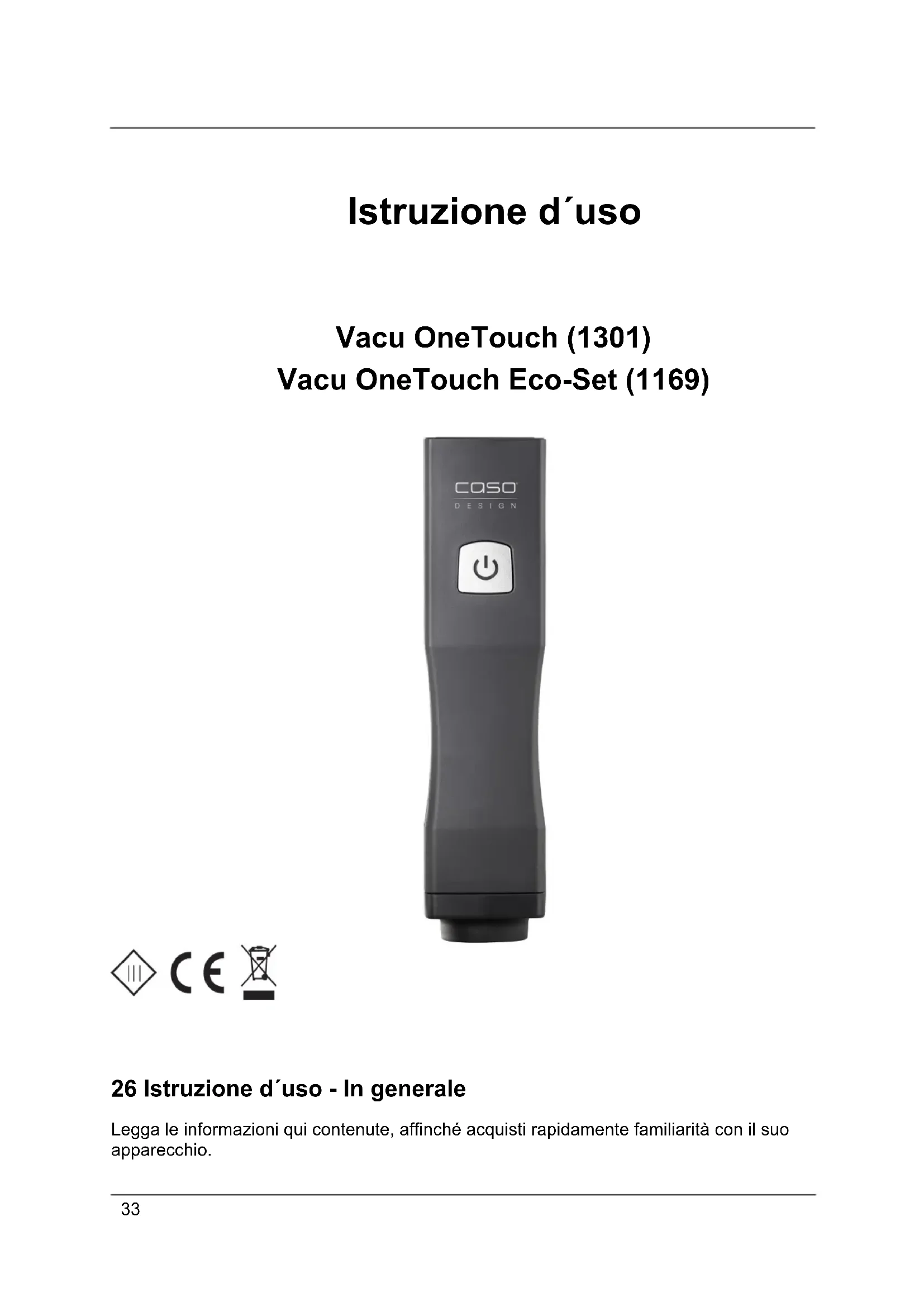 Vacu OneTouch EcoSet 1169 - Aspirapolvere CASO - Manuale utente e istruzioni gratuiti