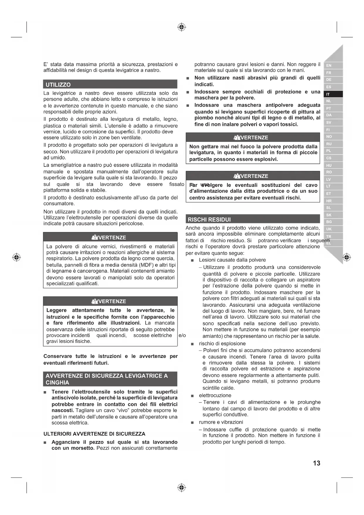 AVVERTENZE DI SICUREZZA LEVIGATRICE A