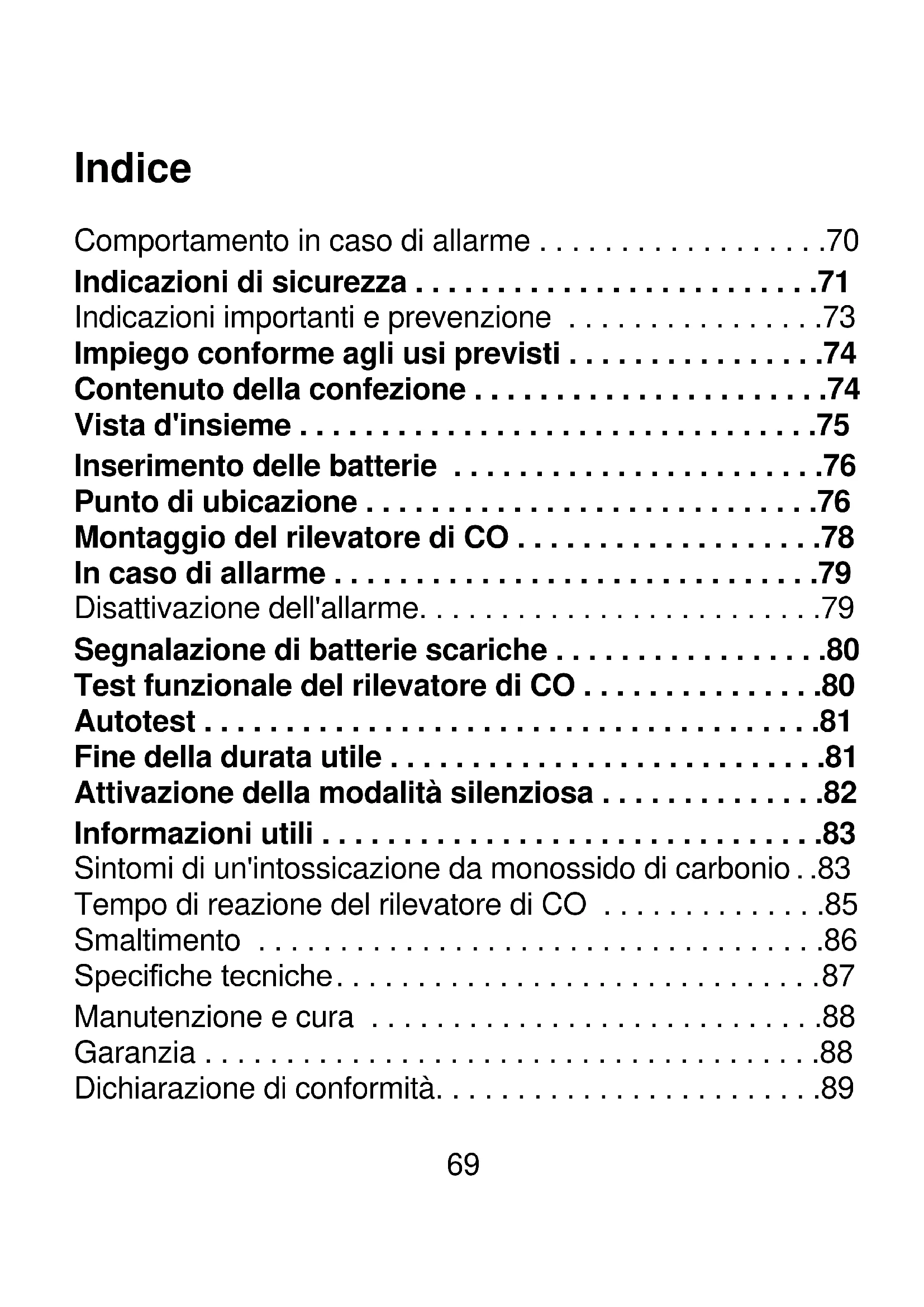 - Il rilevatore di CO non rileva fumo, fuoco o altri gas che non siano CO Per poter segnalare la presenza di fumo o calore, installare appositi rilevatori