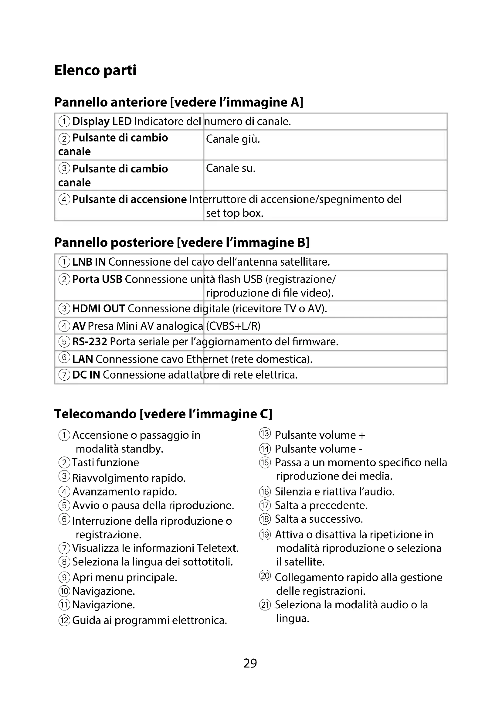 - Eventuali modiche al prodotto possono comportare conseguenze per la sicurezza, la garanzia e il corretto funzionamento. DVBS2265BK__MAN_COMP_0719_(19314 1422)_85x120_booklet_V03.indd 28 16-7-2019 12:50:1429 Elenco parti Pannello anteriore [vedere l’immagine A]