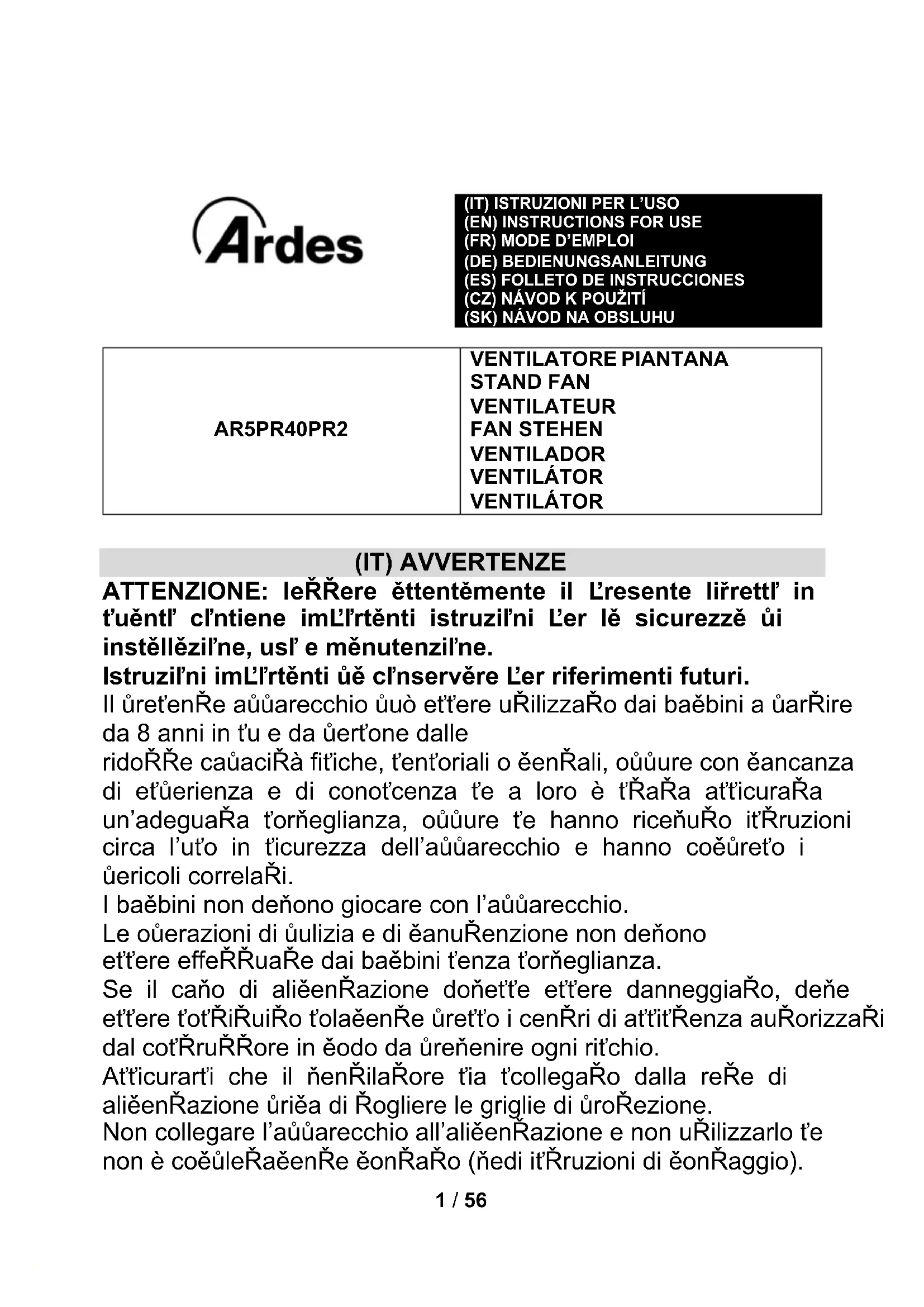 Scarica le istruzioni per il tuo Ventilatore in formato PDF gratuitamente! Trova il tuo manuale AR5PR40PR2 - ARDES e riprendi in mano il tuo dispositivo elettronico. In questa pagina sono pubblicati tutti i documenti necessari per l'utilizzo del tuo dispositivo. AR5PR40PR2 del marchio ARDES.
