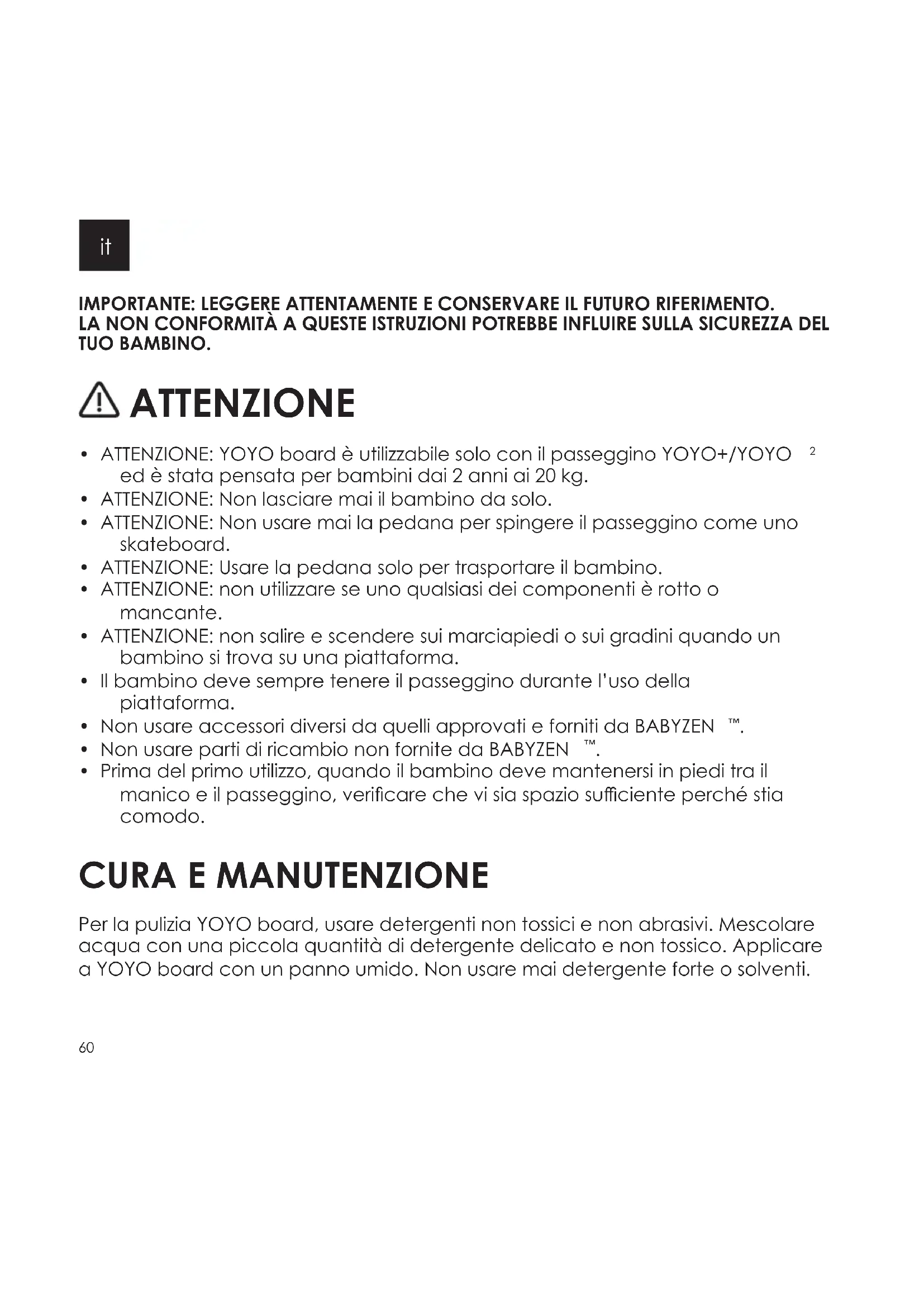 - ATTENZIONE: YOYO board è utilizzabile solo con il passeggino YOYO+/YOYO