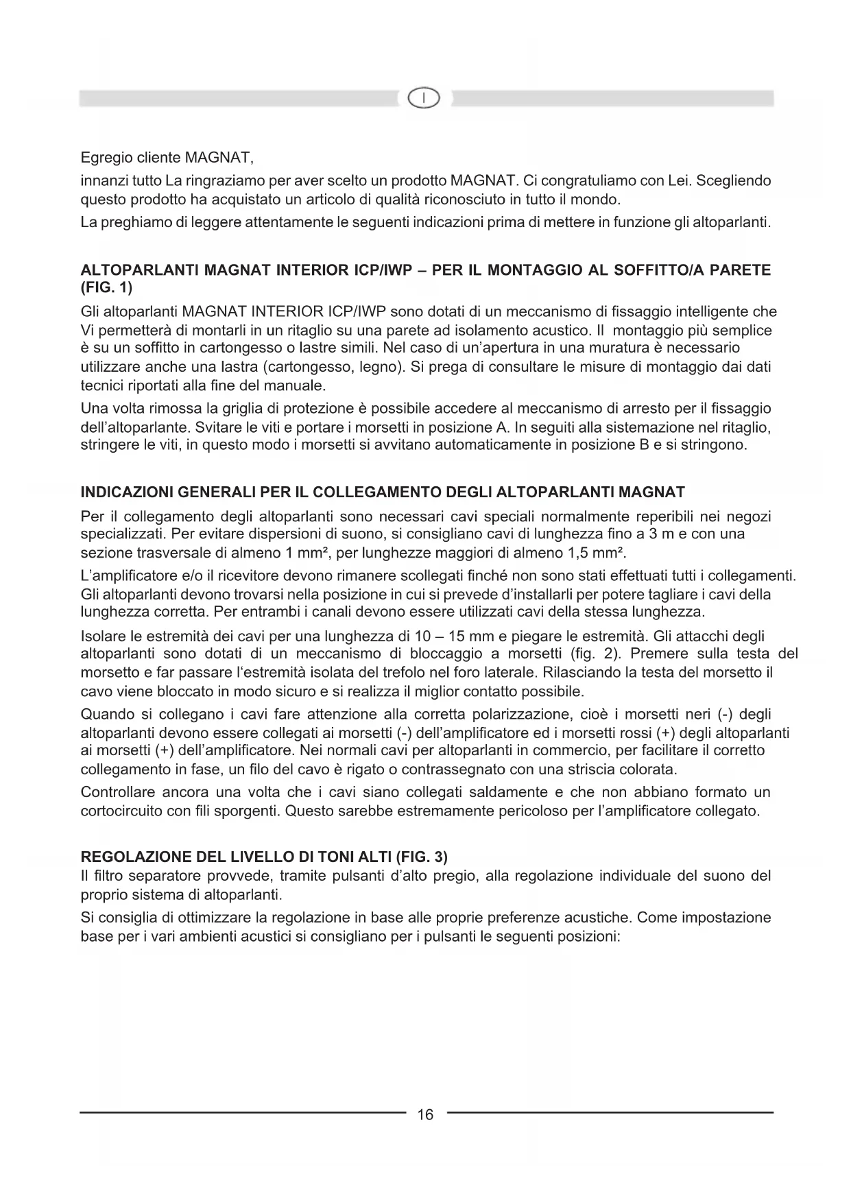 Scarica le istruzioni per il tuo Altoparlante in formato PDF gratuitamente! Trova il tuo manuale Interior ICP 52 - MAGNAT e riprendi in mano il tuo dispositivo elettronico. In questa pagina sono pubblicati tutti i documenti necessari per l'utilizzo del tuo dispositivo. Interior ICP 52 del marchio MAGNAT.