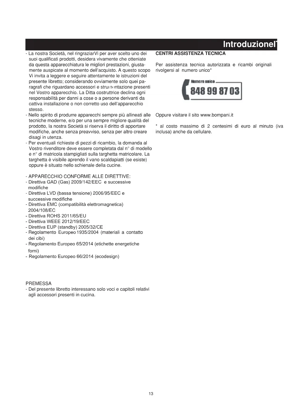 Per assistenza tecnica autorizzata e ricambi originali rivolgersi al numero unico*