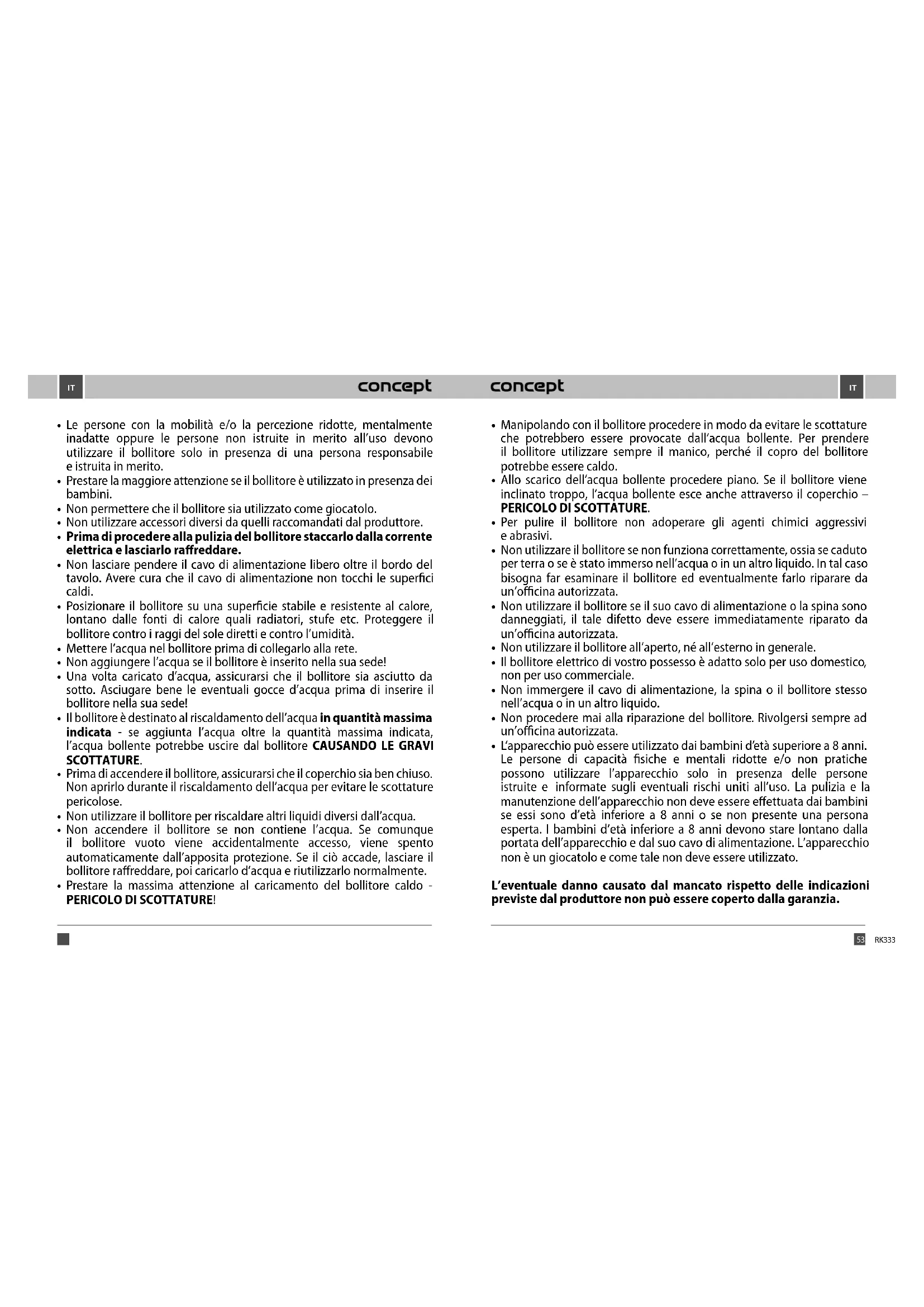 Scarica le istruzioni per il tuo Bollitore in formato PDF gratuitamente! Trova il tuo manuale RK3331 - Concept e riprendi in mano il tuo dispositivo elettronico. In questa pagina sono pubblicati tutti i documenti necessari per l'utilizzo del tuo dispositivo. RK3331 del marchio Concept.