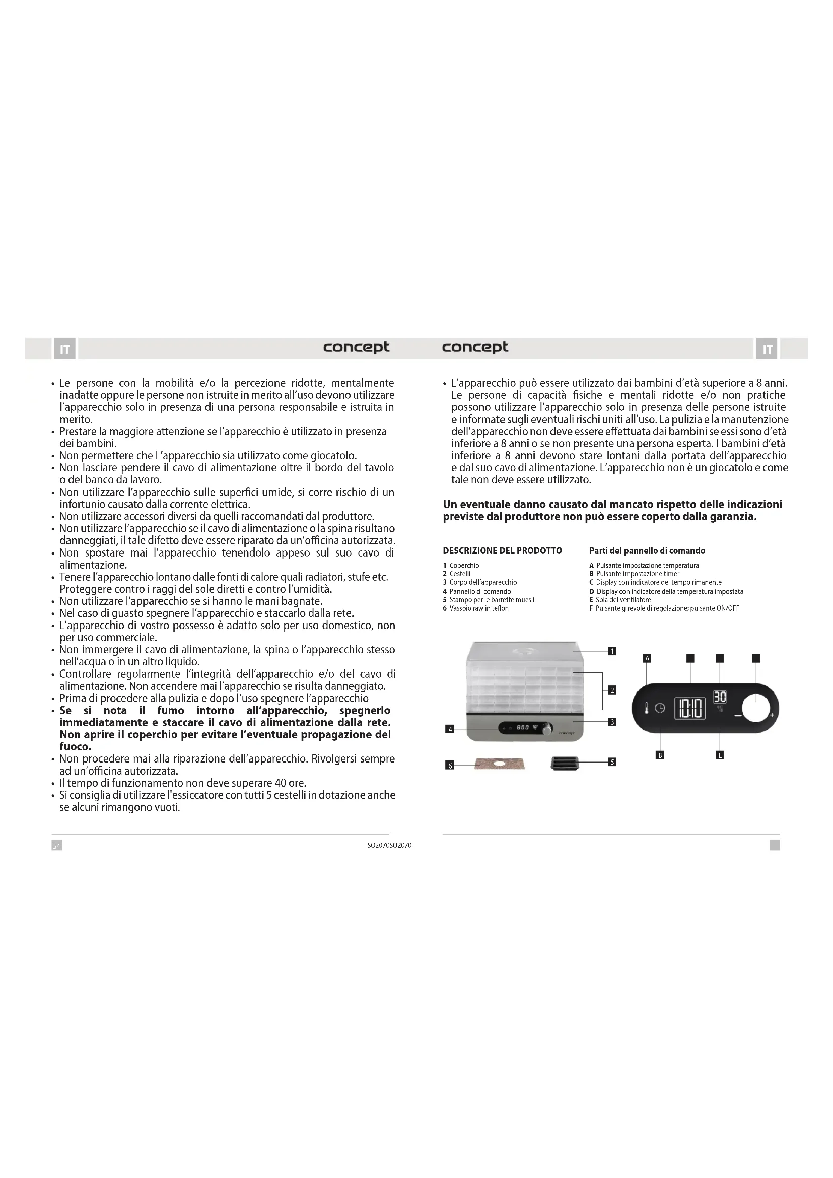 SO2070 - Essiccatore alimentare Concept - Manuale utente e istruzioni gratuiti