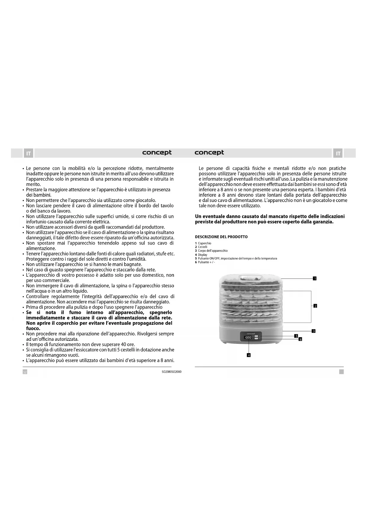 SO2080 - Essiccatore alimentare Concept - Manuale utente e istruzioni gratuiti