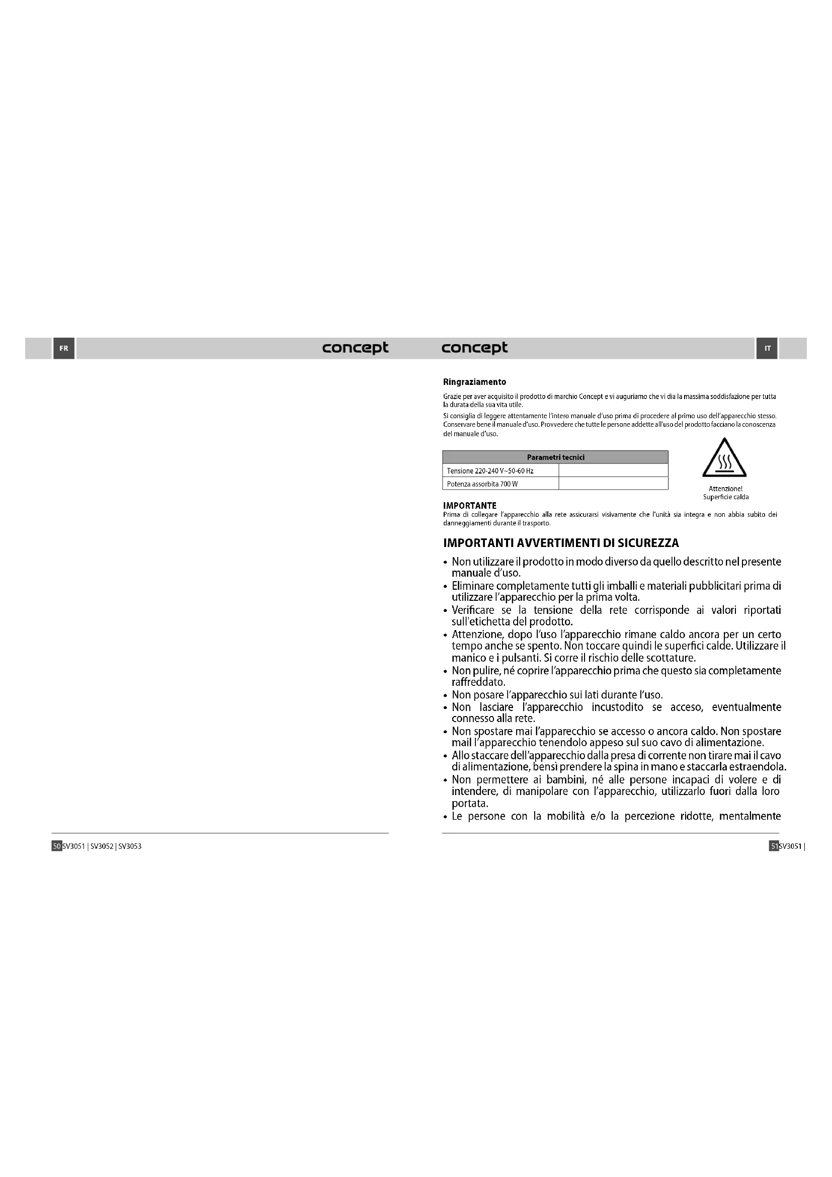 MANUALE UTENTE SV3053 Concept