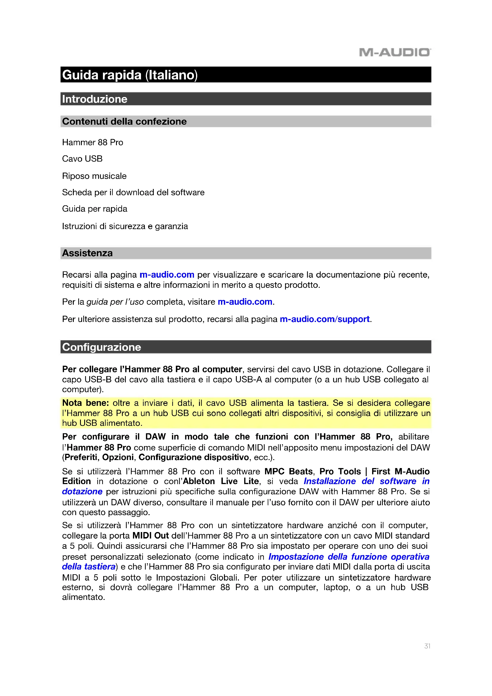Hammer 88 Pro - Tastiera M-AUDIO - Manuale utente e istruzioni gratuiti