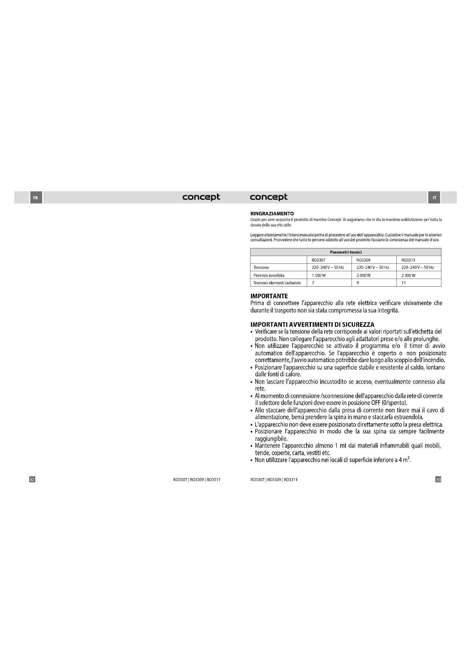 Scarica le istruzioni per il tuo Riscaldamento in formato PDF gratuitamente! Trova il tuo manuale RO3309 - Concept e riprendi in mano il tuo dispositivo elettronico. In questa pagina sono pubblicati tutti i documenti necessari per l'utilizzo del tuo dispositivo. RO3309 del marchio Concept.