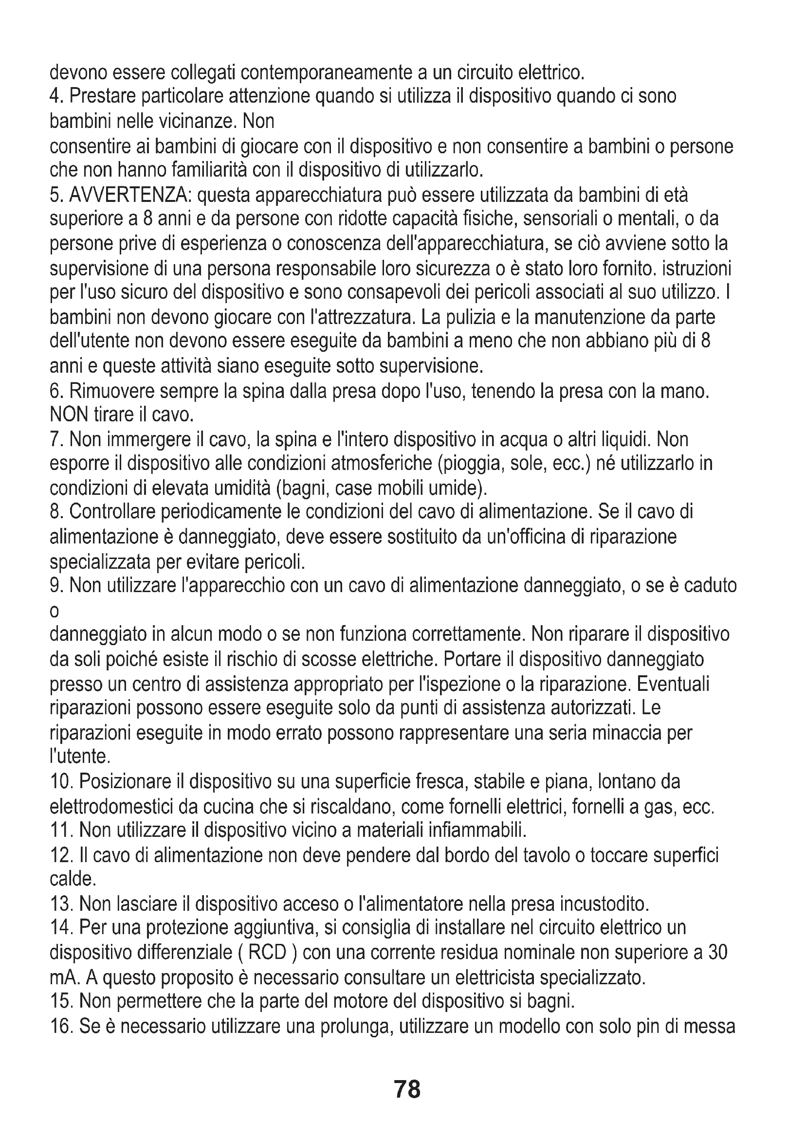 220-240 V ~ 50/60 Hz. Per aumentare la sicurezza d'uso, molti dispositivi elettrici non (IT) ITALIANO78