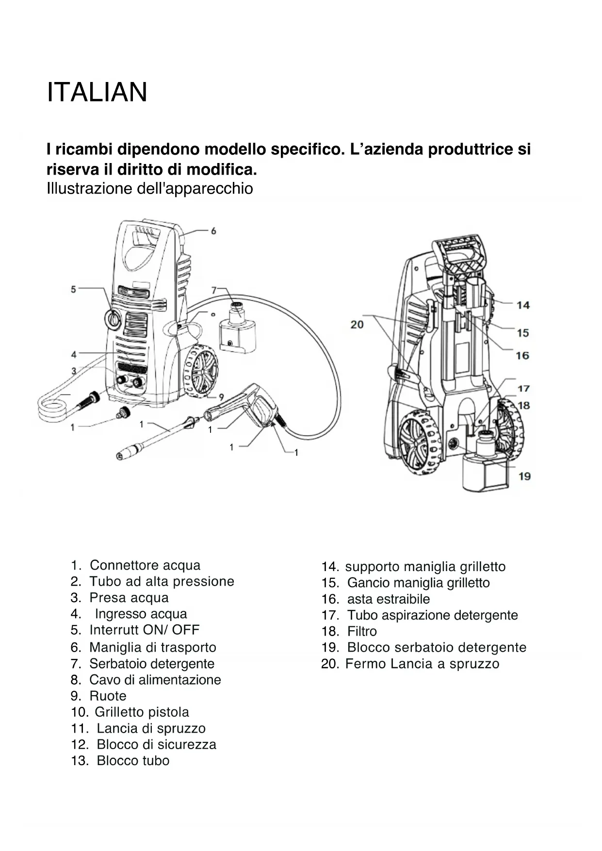 Gentile cliente, NON utilizzare l'idropulitrice prima di aver letto questo manuale! Istruzioni generali