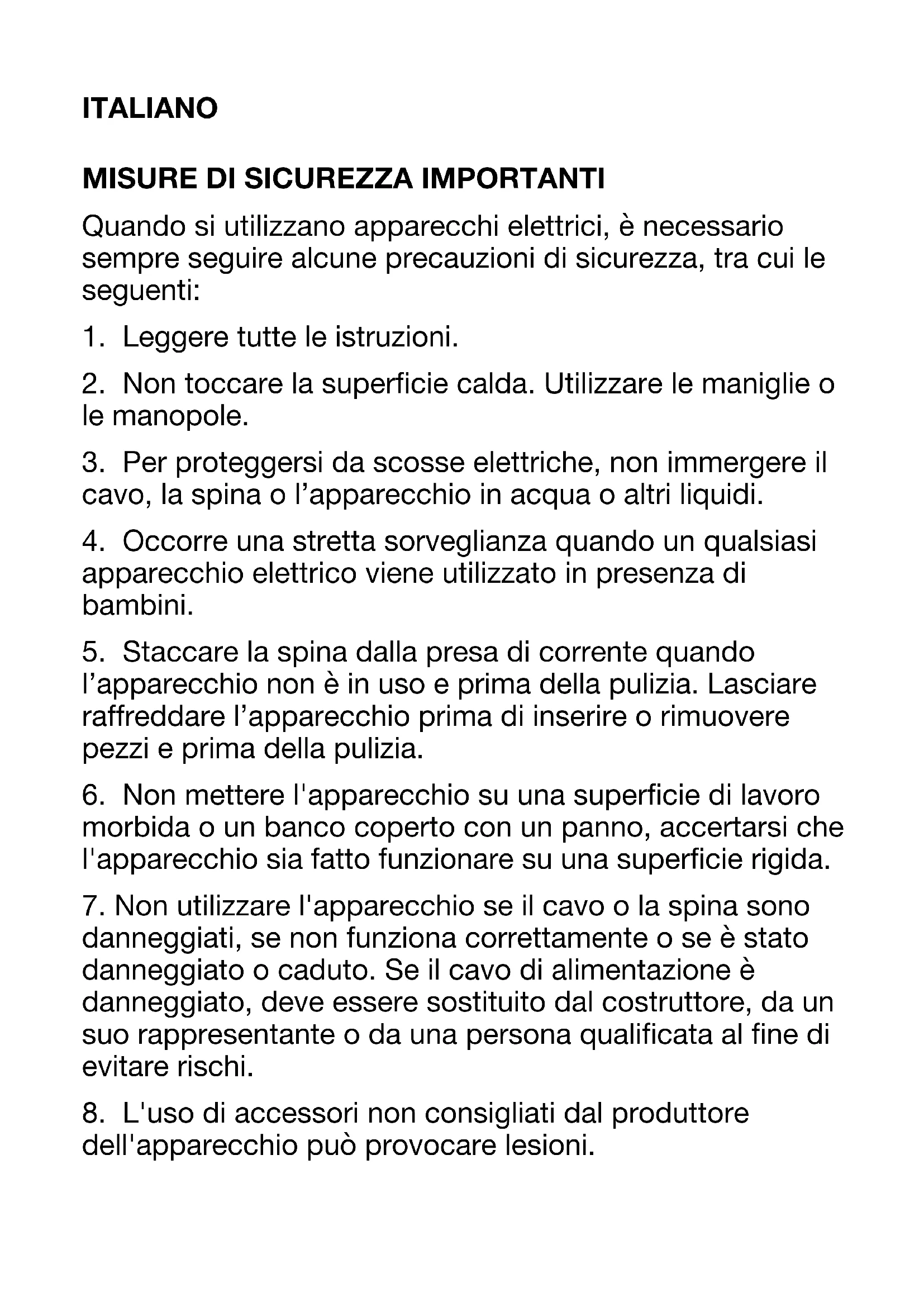 1. Leggere tutte le istruzioni.