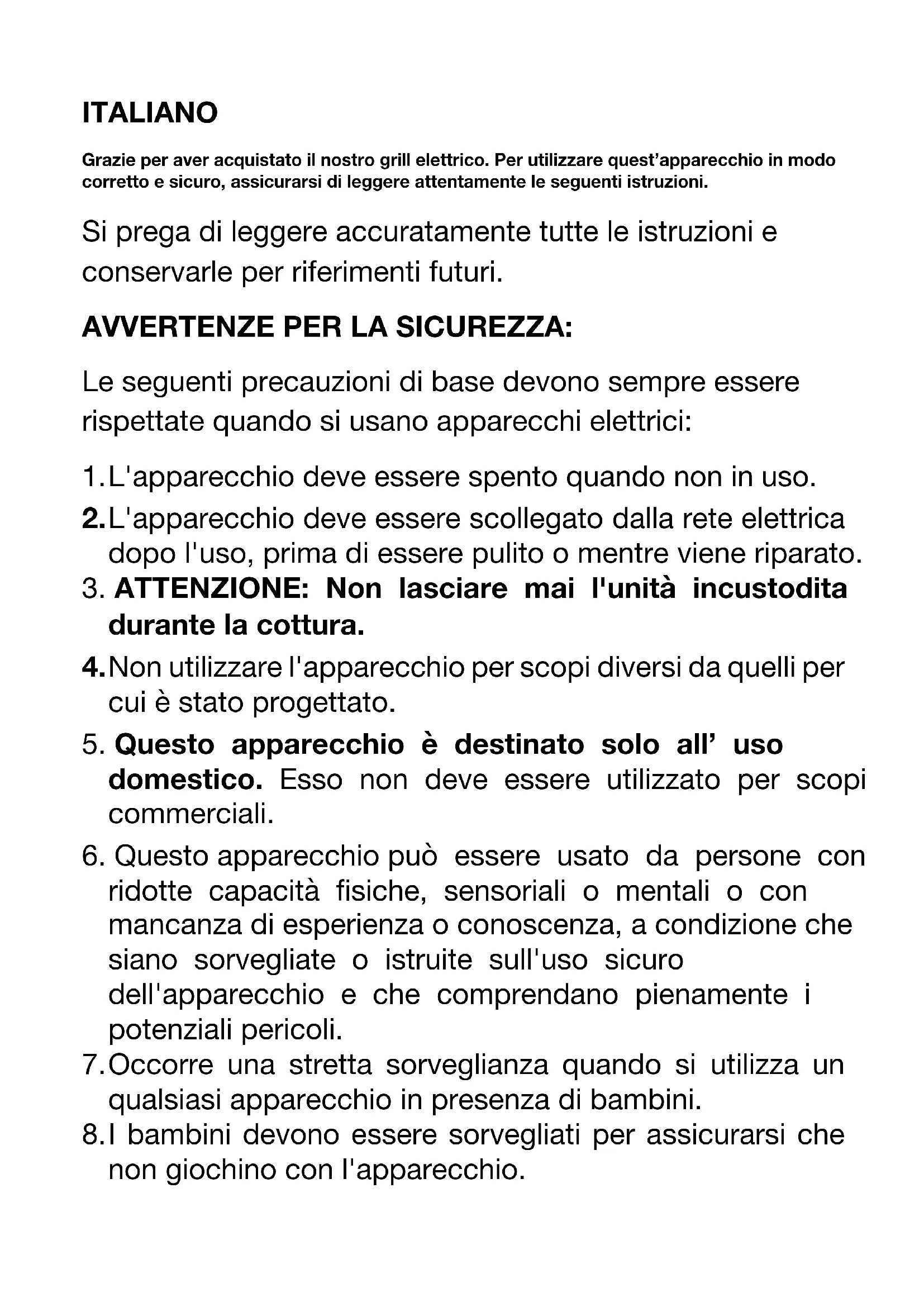 5. Questo apparecchio è destinato solo all’ uso