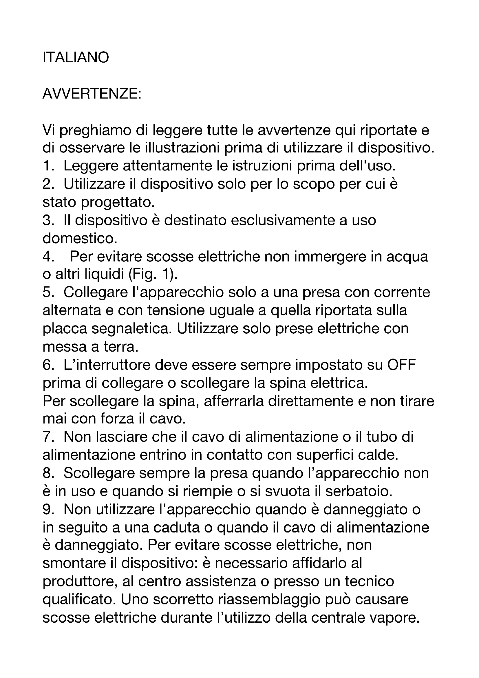 4. Per evitare scosse elettriche non immergere in acqua