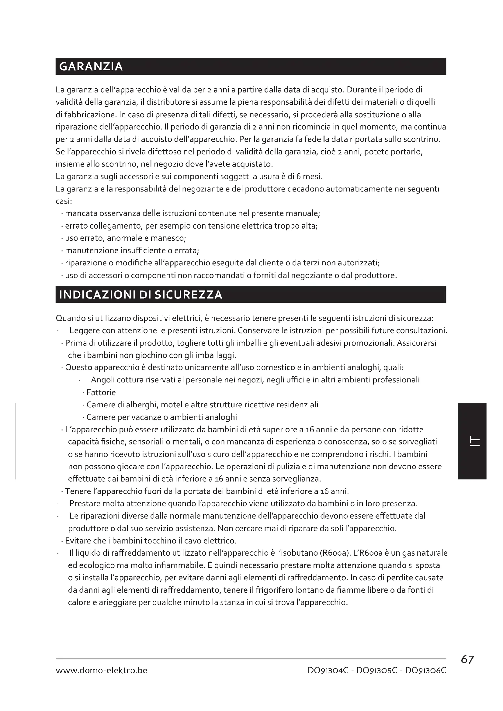 - Non utilizzare nessuna apparecchiatura elettrica all’interno del frigorifero, a meno che tale dispositivo non sia approvato dal produttore.69 DO91304C - DO91305C - DO91306C www.domo-elektro.be