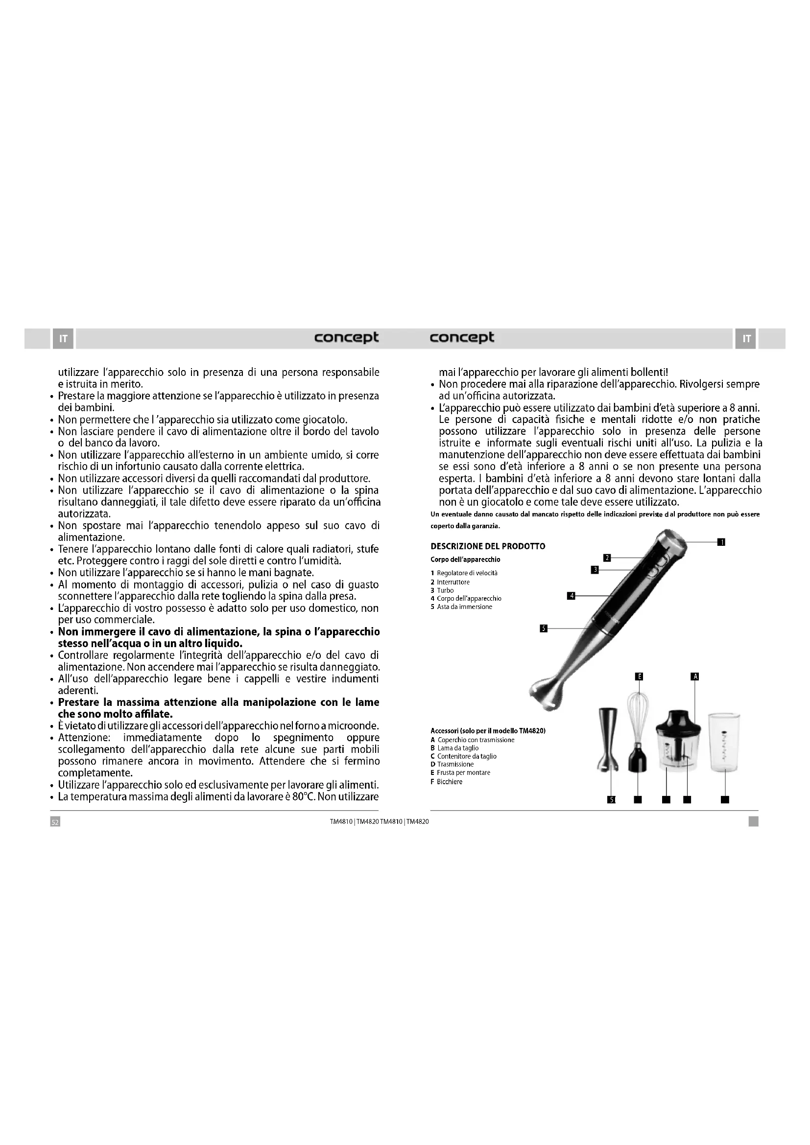 TM4810 - Frullatore a immersione Concept - Manuale utente e istruzioni gratuiti