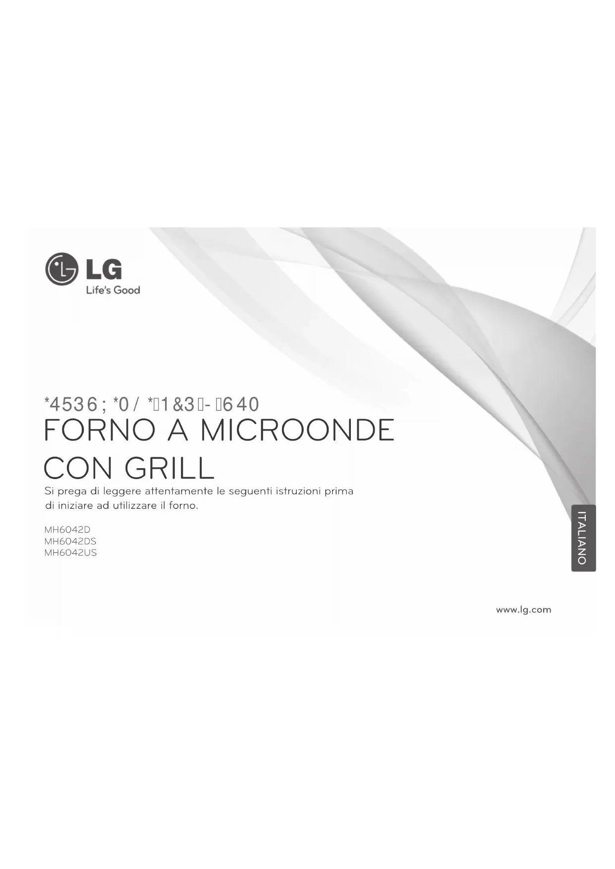 Scarica le istruzioni per il tuo Microonde in formato PDF gratuitamente! Trova il tuo manuale MH6042US - LG e riprendi in mano il tuo dispositivo elettronico. In questa pagina sono pubblicati tutti i documenti necessari per l'utilizzo del tuo dispositivo. MH6042US del marchio LG.