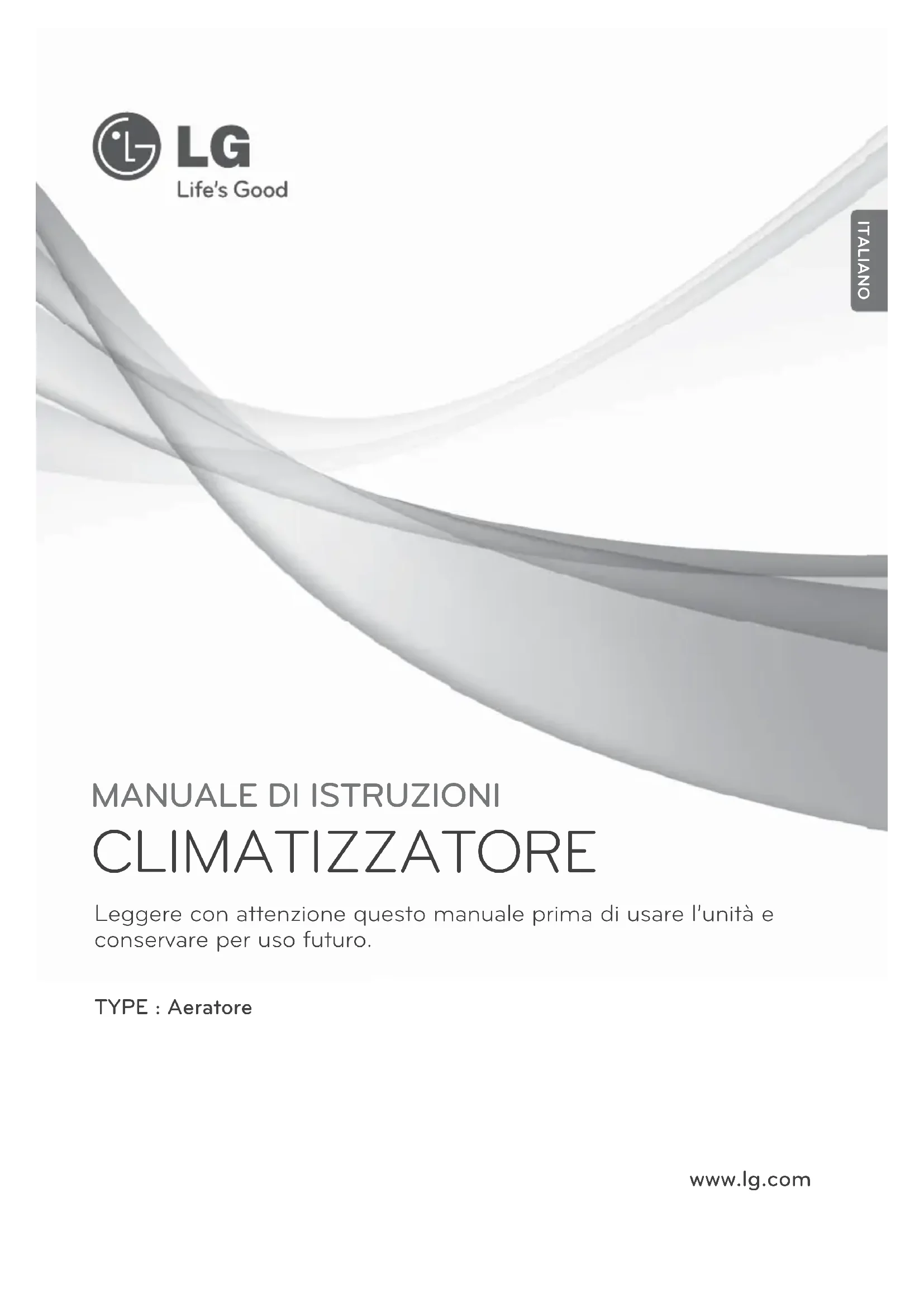 CLIMATIZZATORE Leggere con attenzione questo manuale prima di usare l’unità e conservare per uso futuro. TYPE : Aeratore ITALIANO2 Aeratore Manuale per l'utente dell'aeratore SOMMARIO