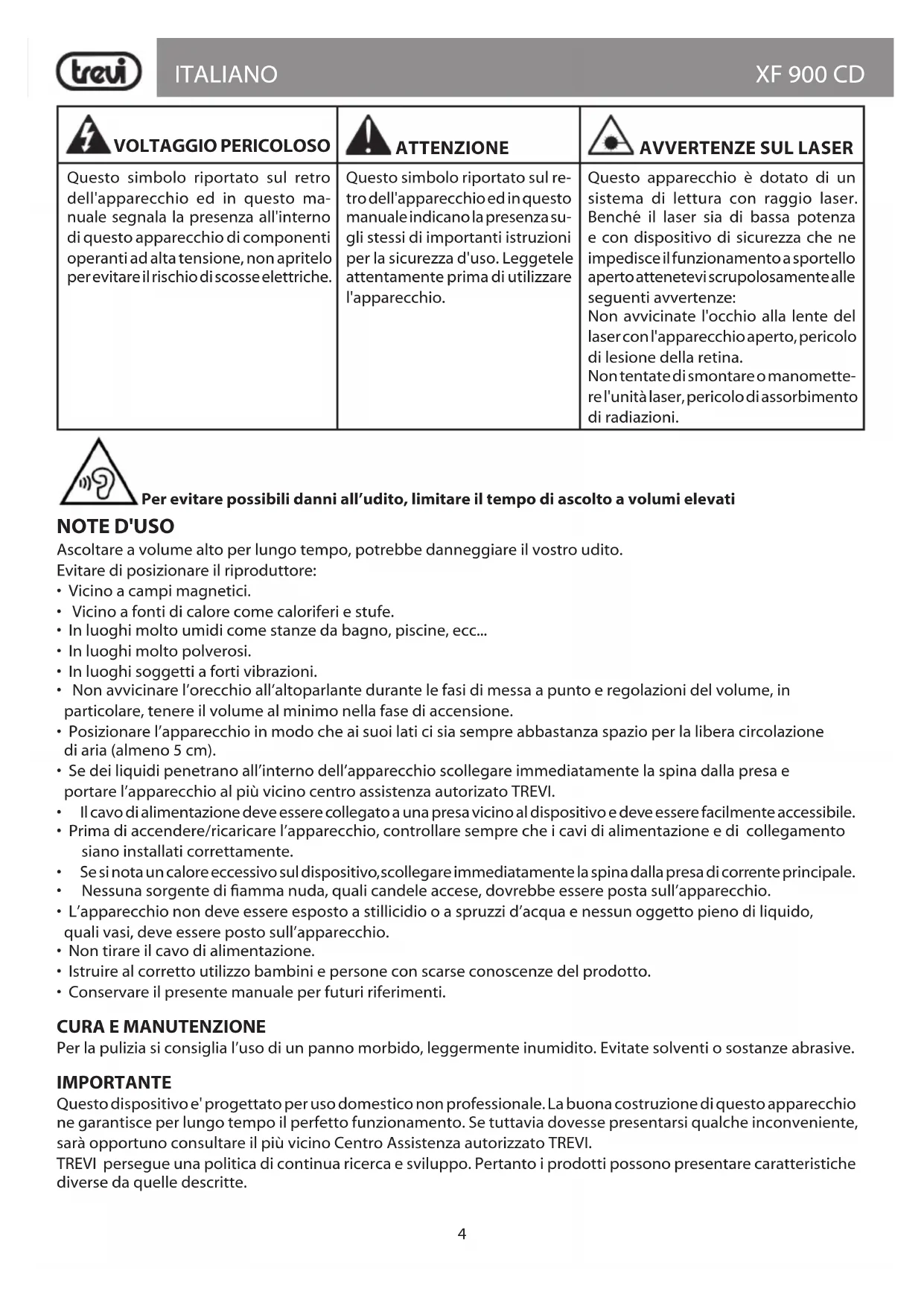 MANUALE UTENTE XF 900 CD Trevi