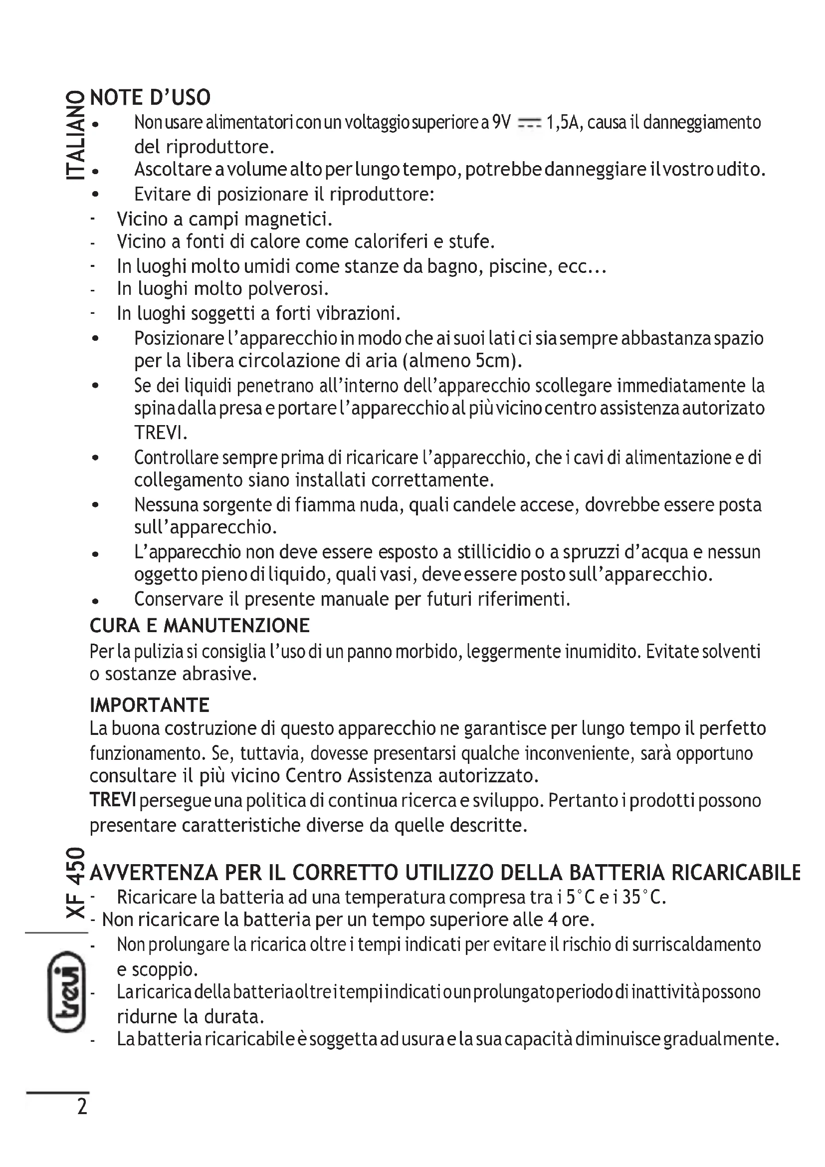 MANUALE UTENTE XF 450 Trevi