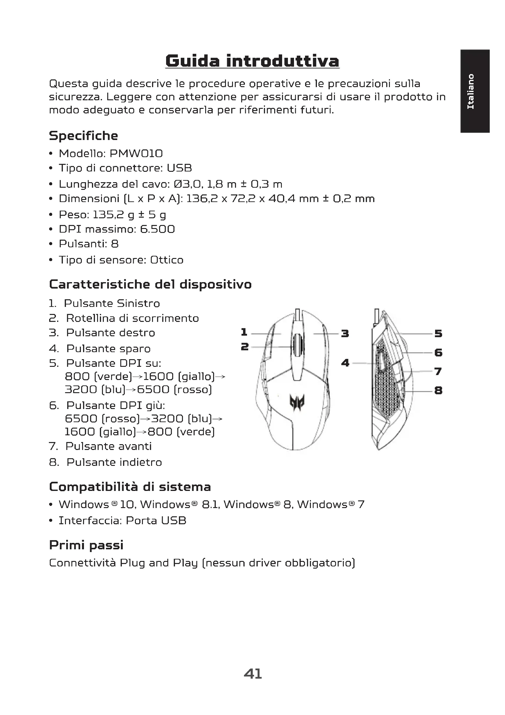 Predator Cestus 315 - Mouse ACER - Manuale utente e istruzioni gratuiti
