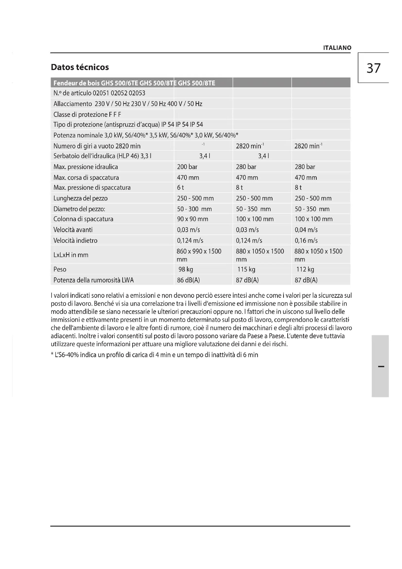 presenta lo sfruttamento deiminorenni per lo scopodell’addestramento professionaleper raggiungere la pratica sottocontrollo dell‘istruttore. In caso dei dubbi sul collegamento ed uso dell‘apparecchio, rivolgersi cortesemente al CAT. Gli operatori devono essere addestrati per usare, impostare e manovrare l‘apparecchio. Uso in conformità alla destinazione Spaccalegna è destinato esclusivamente a spaccare la legna nel senso delle bre. Con riferimento ai dati tecnici ed alle istruzioni di sicurezza E‘ indispensabile attendersi durante la spaccata a che la legna da spaccare appoggi bene sulla lamiera rigata della tavola. La macchina può essere usata solo se completa