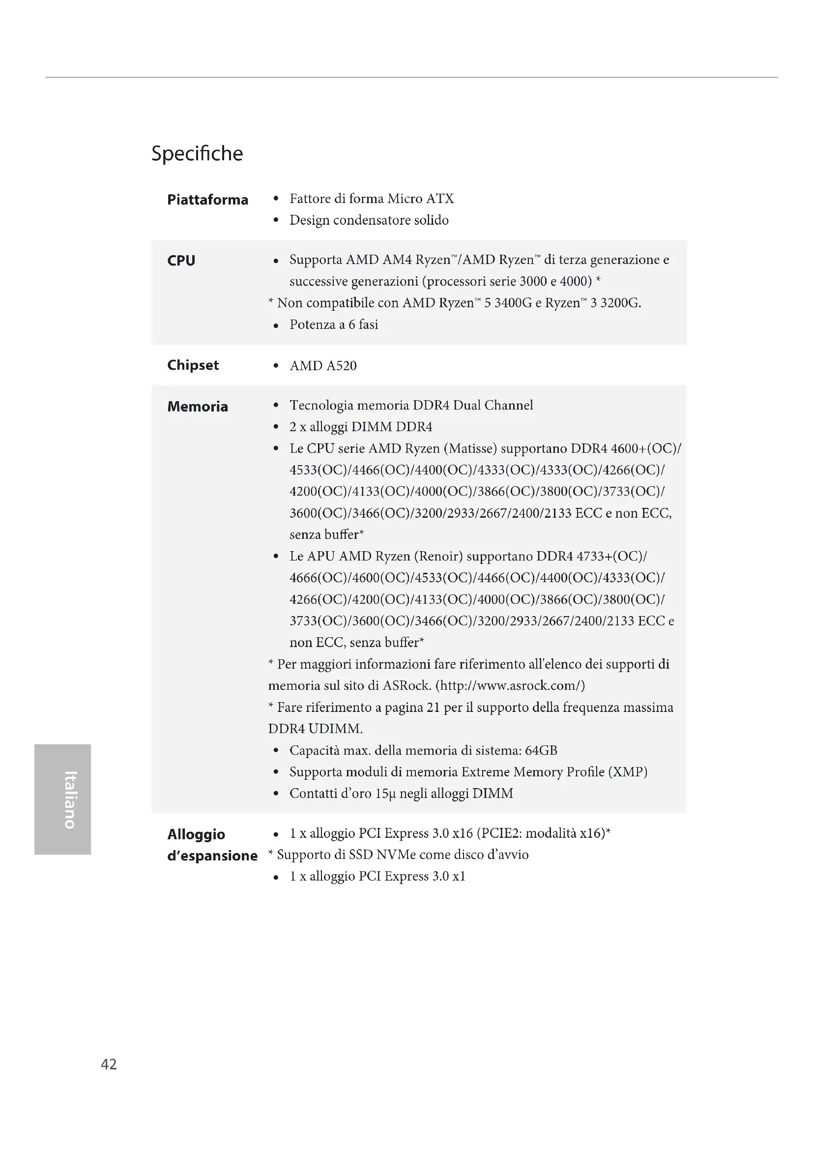 Supporta AMD AM4 Ryzen™/AMD Ryzen™ di terza generazione e successive generazioni (processori serie 3000 e 4000) *