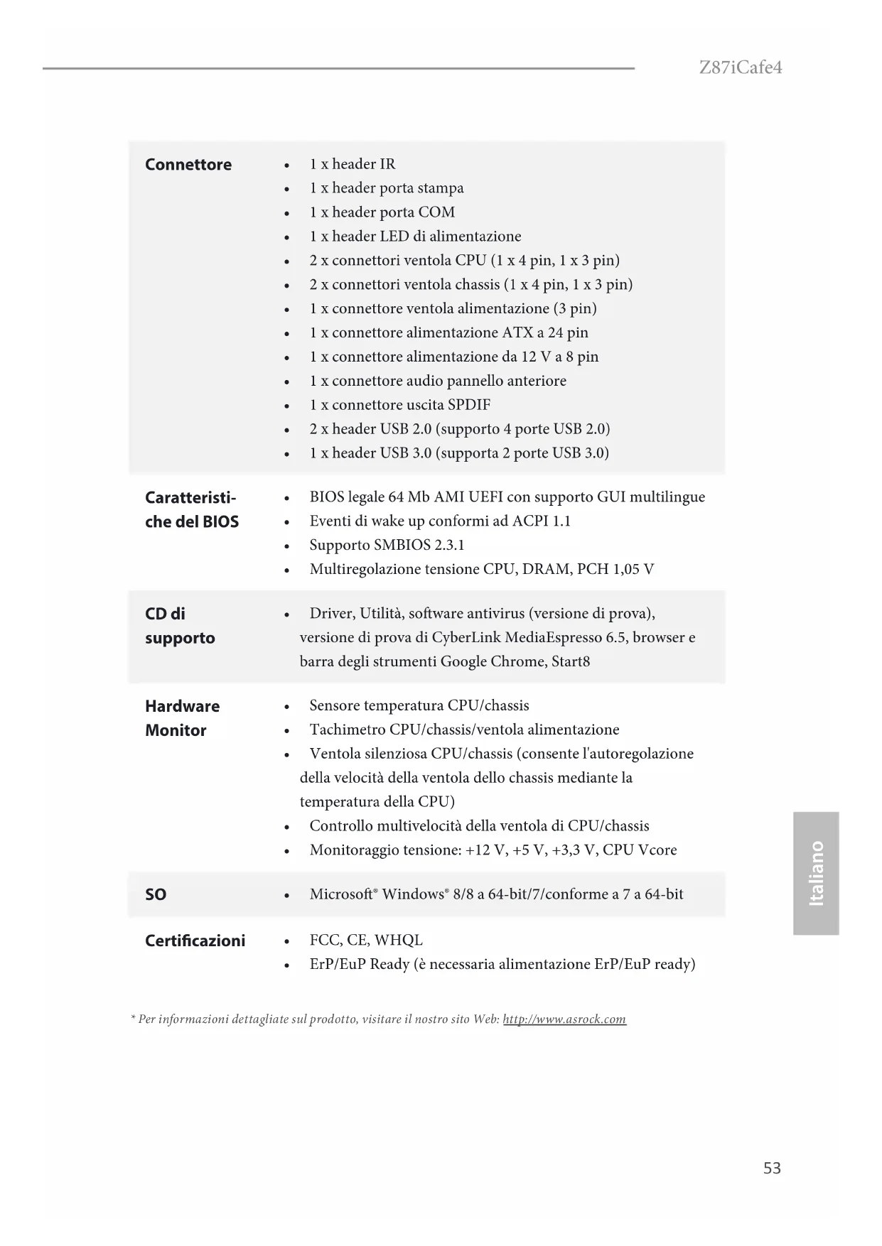 MANUALE UTENTE Z87iCafe4 ASROCK