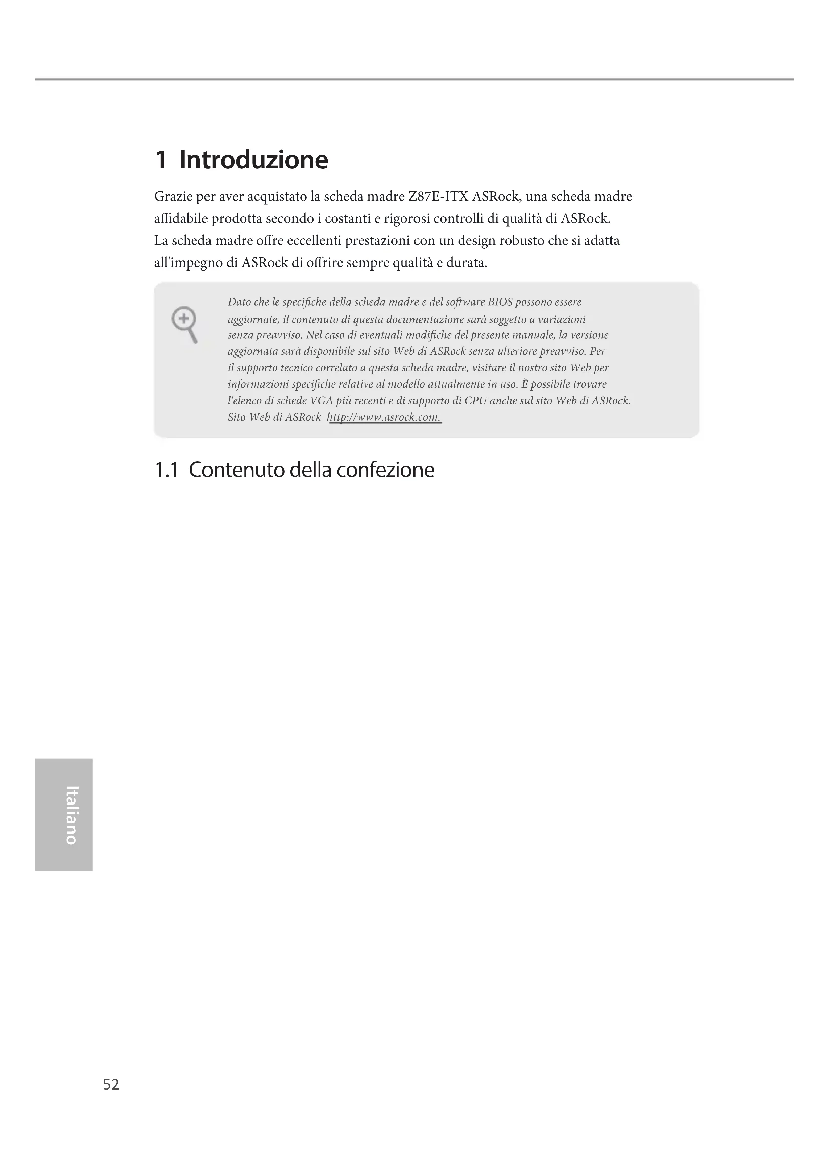 - Per informazioni dettagliate sul prodotto, visitare il nostro sito Web: http://www.asrock.comZ87E-ITX