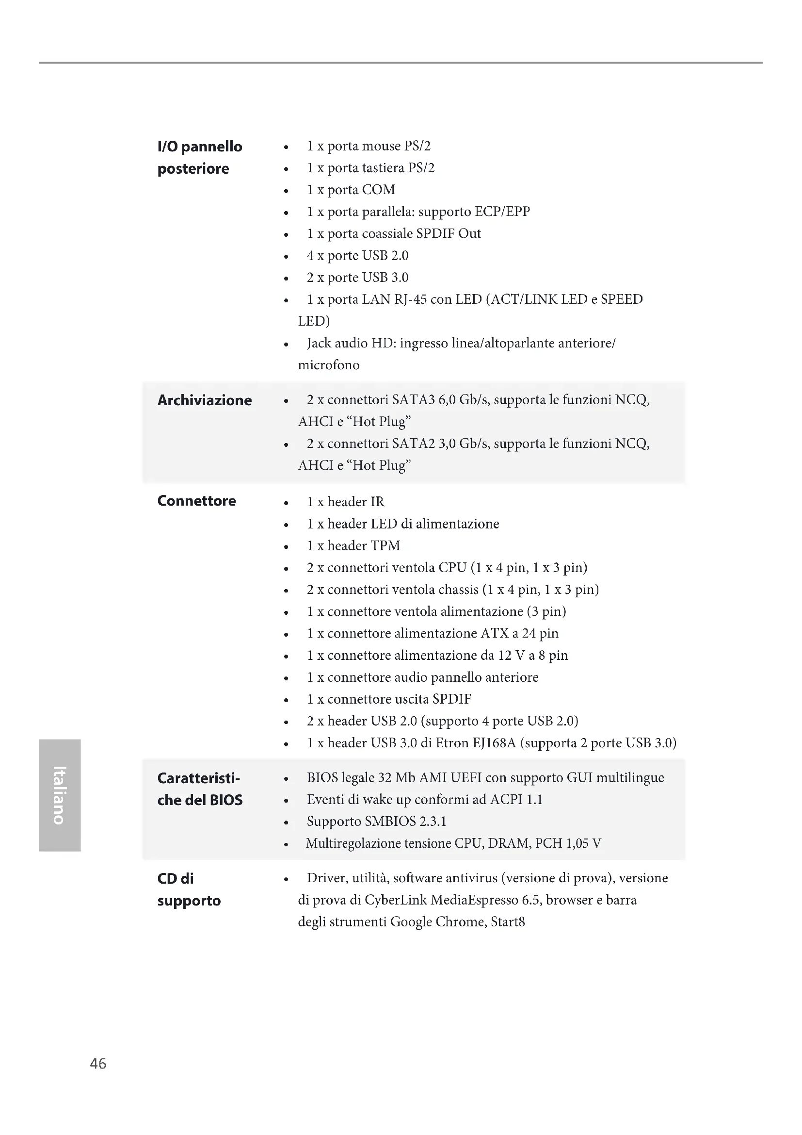 - BIOS legale 32 Mb AMI UEFI con supporto GUI multilingue