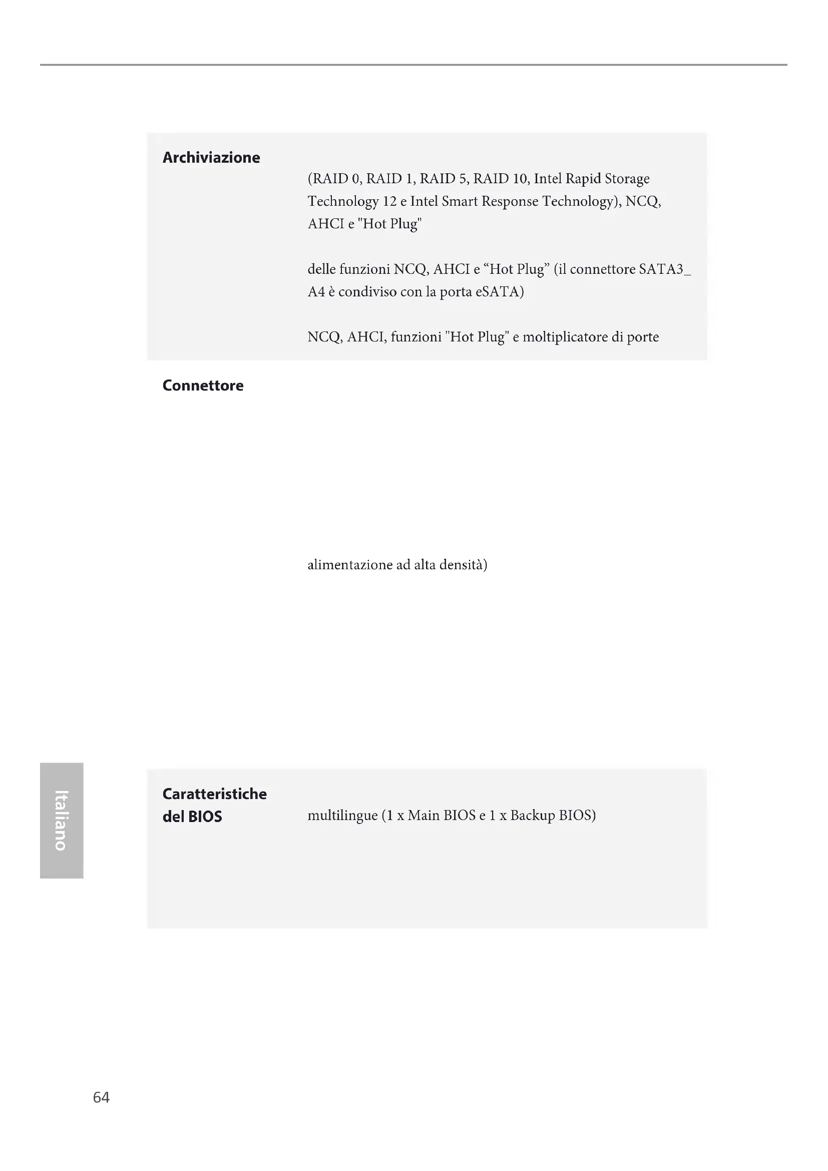 - 2 x 64Mb AMI UEFI Legal BIOS con supporto interfaccia multilingue (1 x Main BIOS e 1 x Backup BIOS)