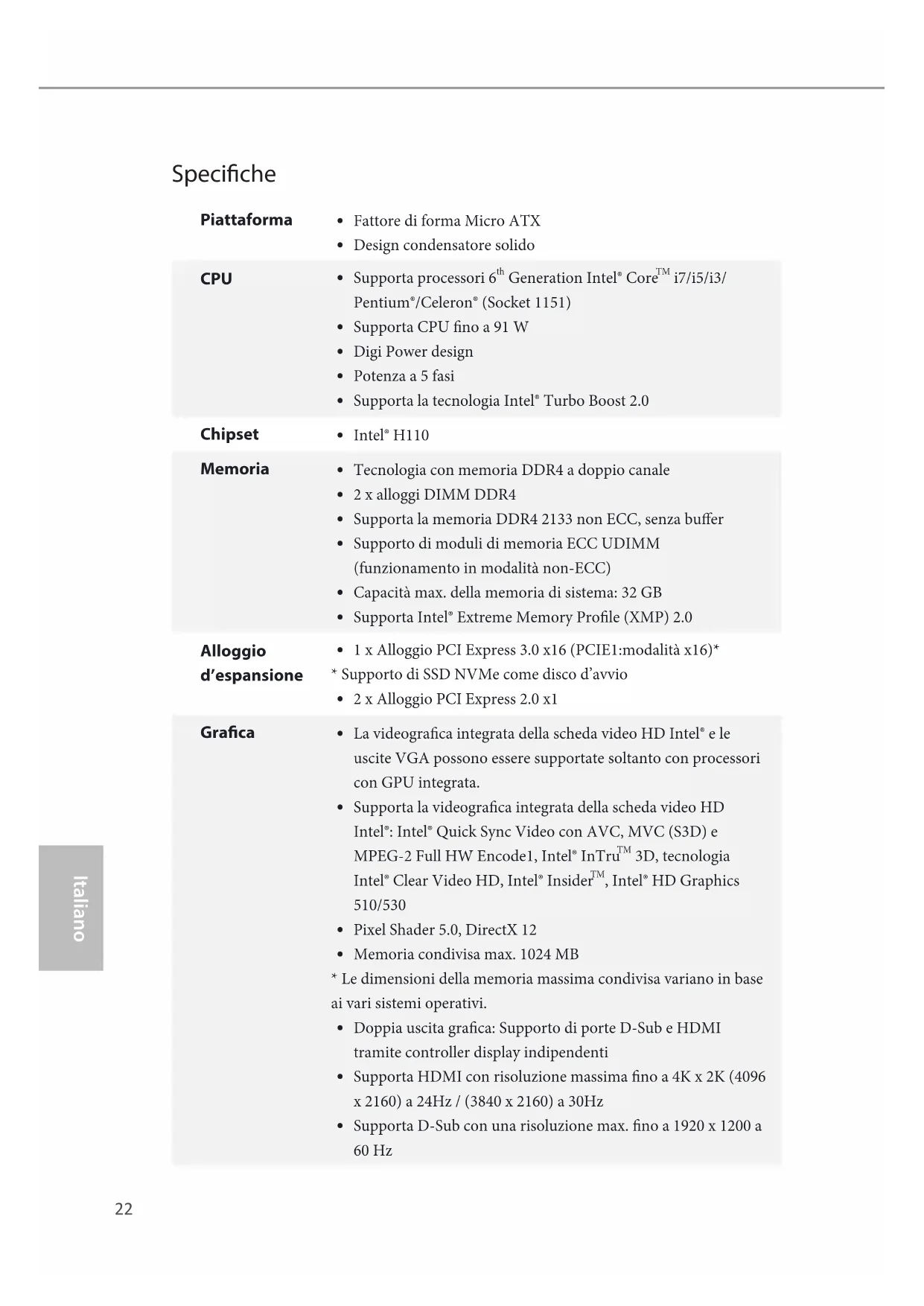 Supporta D-Sub con una risoluzione max. no a 1920 x 1200 a 60 Hz23 Italiano H110M-HG4