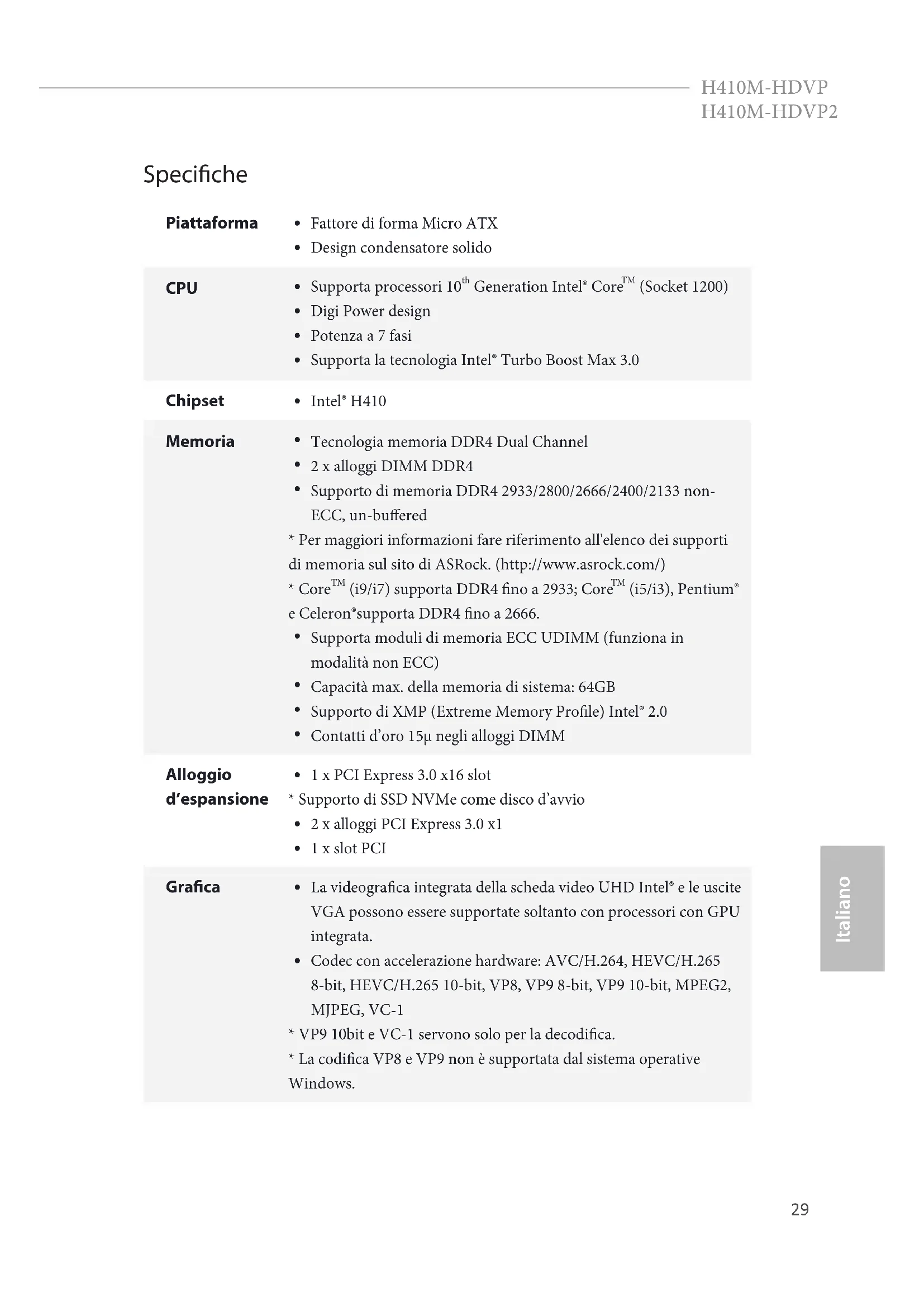 MANUALE UTENTE H410MHDVP ASROCK