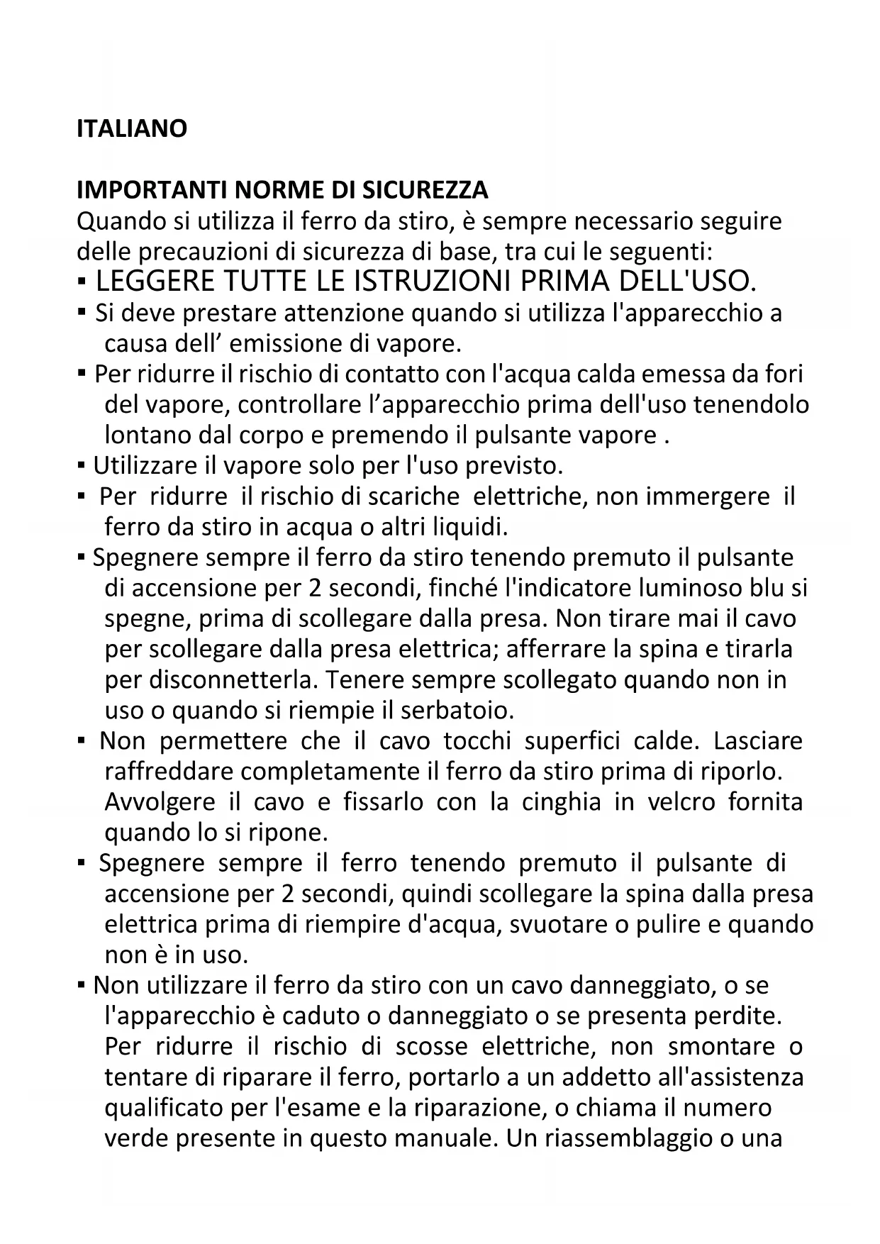 - Leggere tutte le istruzioni prima di utilizzare il ferro da stiro. NOTE IMPORTANTI