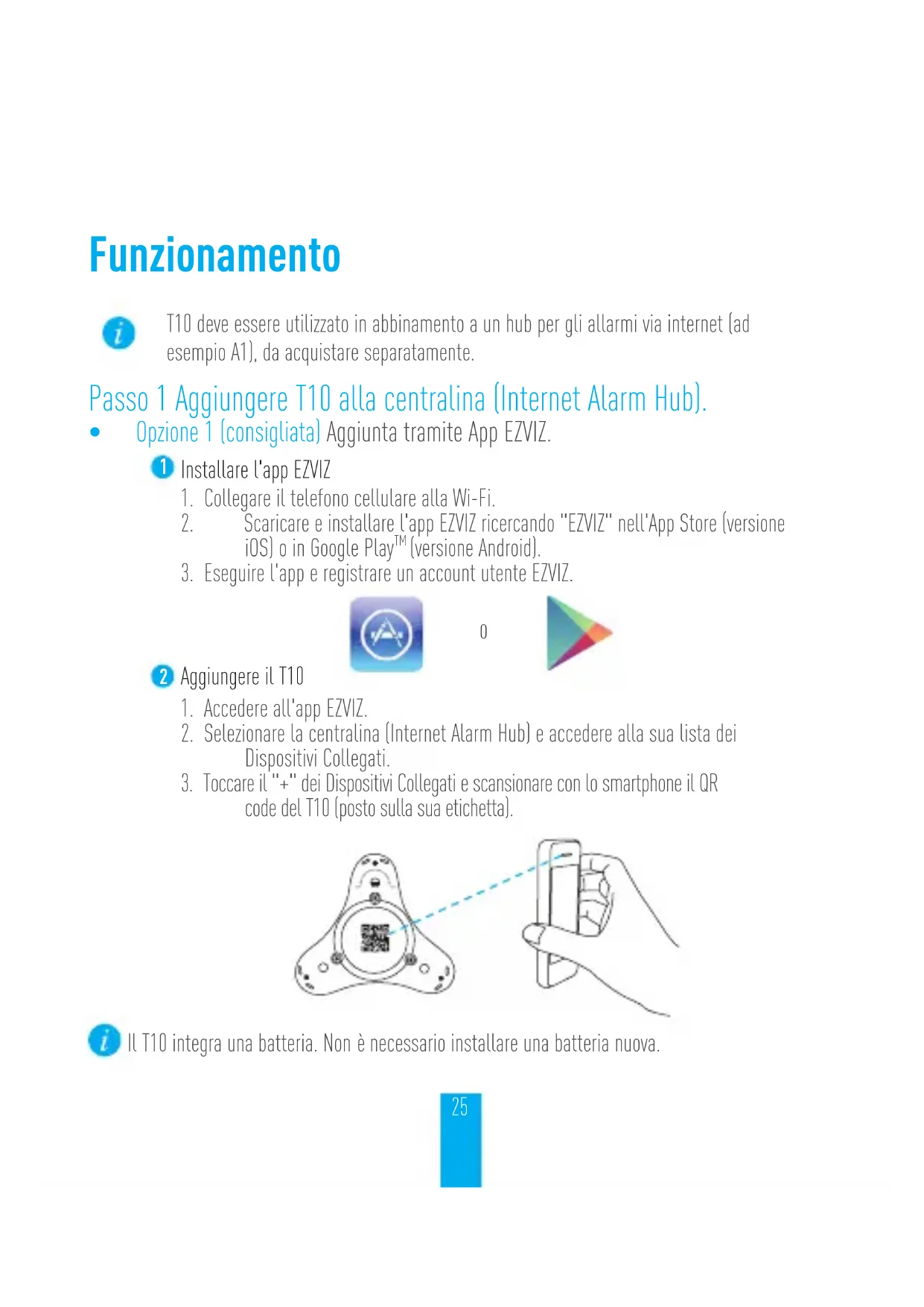 Il T10 integra una batteria. Non è necessario installare una batteria nuova.26
