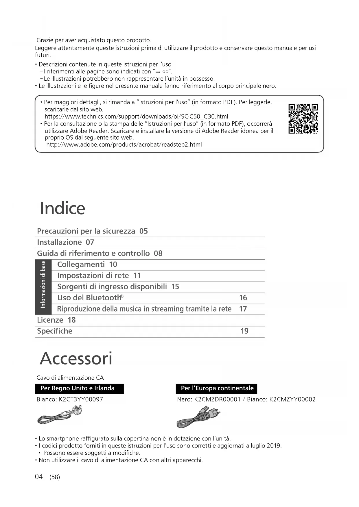 - Per maggiori dettagli, si rimanda a “Istruzioni per l’uso” (in formato PDF). Per leggerle, scaricarle dal sito web. https://www.technics.com/support/downloads/oi/SC-C50_C30.html