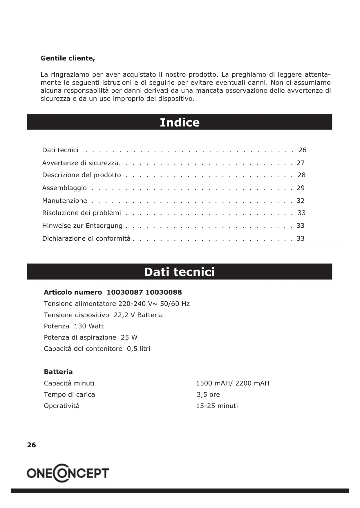MANUALE UTENTE Cleanbutler 2G OneConcept
