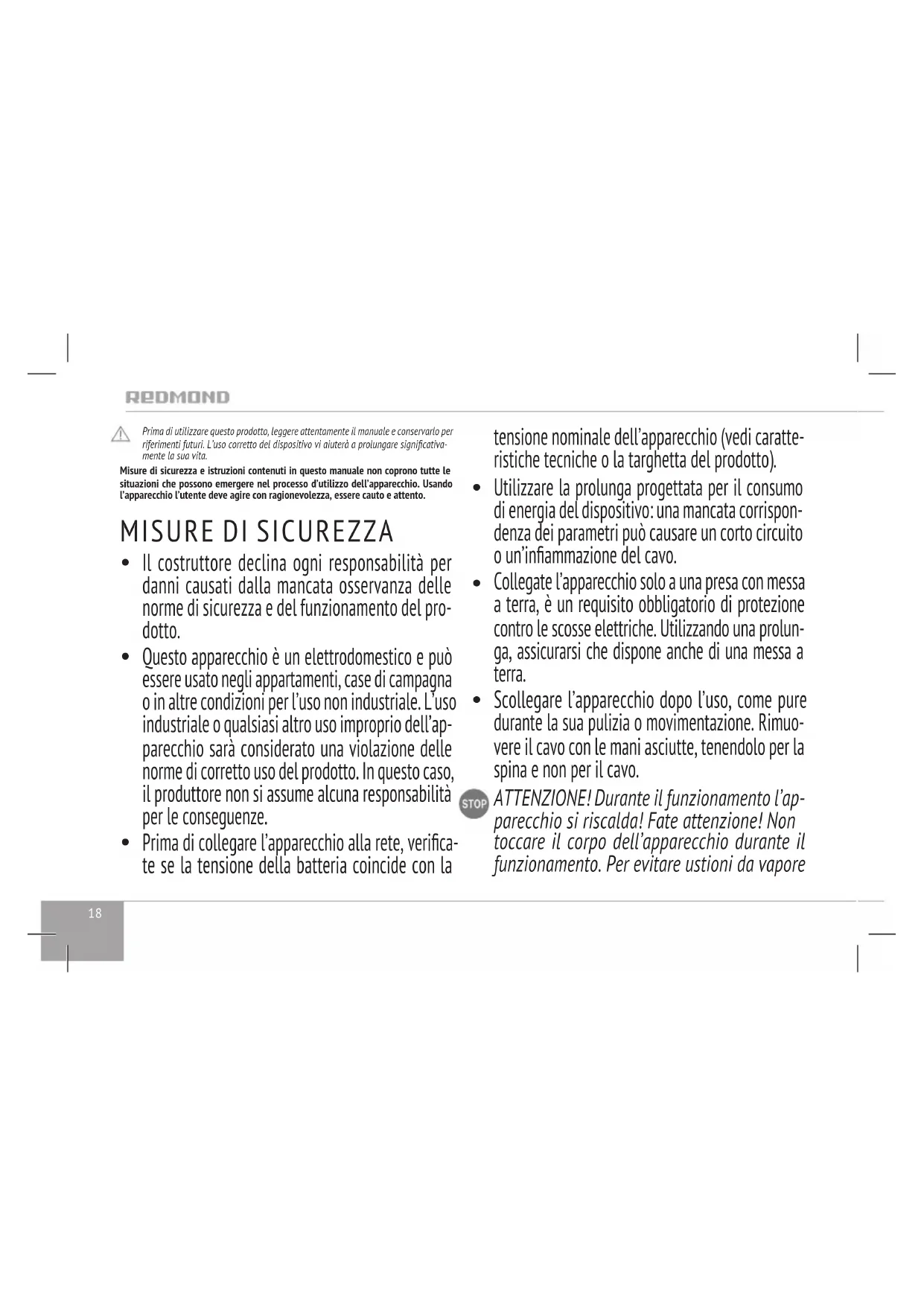 Trova gratuitamente il manuale del dispositivo RKM124E Redmond in formato PDF.