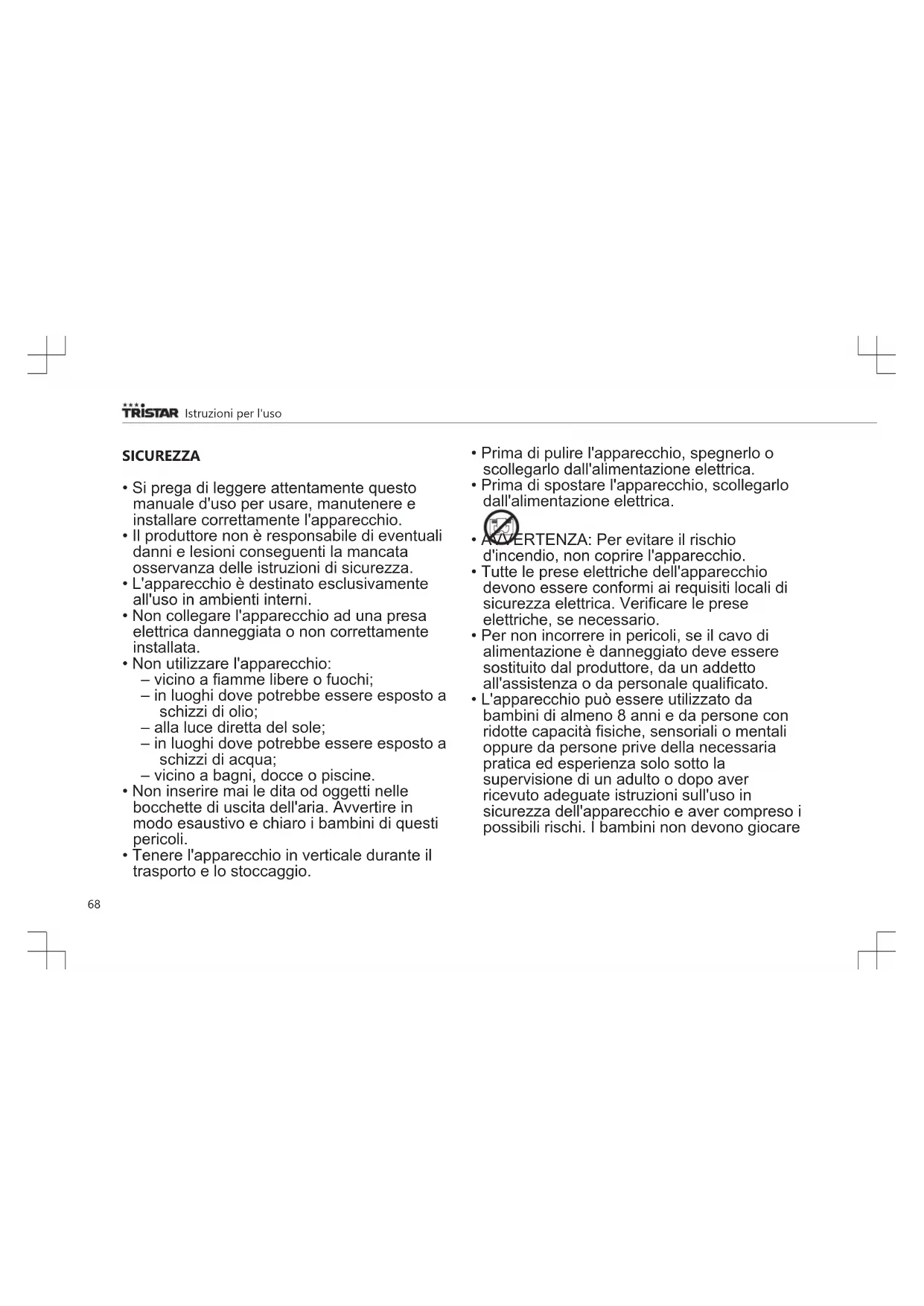 - Non inserire mai le dita od oggetti nelle bocchette di uscita dell'aria. Avvertire in modo esaustivo e chiaro i bambini di questi pericoli.