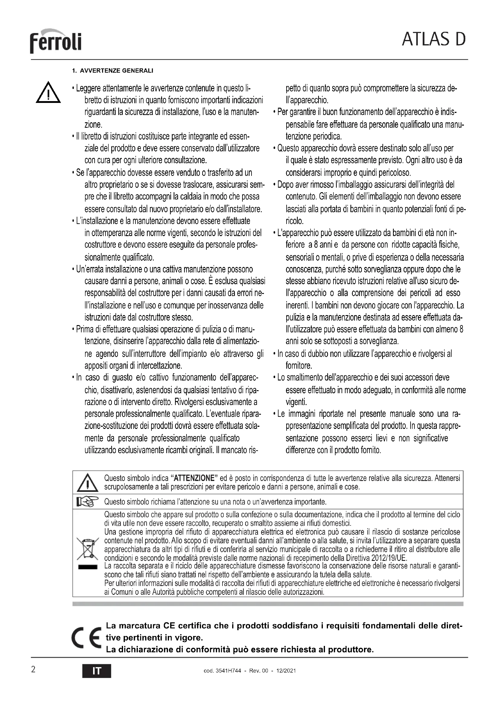 Scarica le istruzioni per il tuo Caldaia di riscaldamento centralizzato in formato PDF gratuitamente! Trova il tuo manuale Atlas D - FERROLI e riprendi in mano il tuo dispositivo elettronico. In questa pagina sono pubblicati tutti i documenti necessari per l'utilizzo del tuo dispositivo. Atlas D del marchio FERROLI.