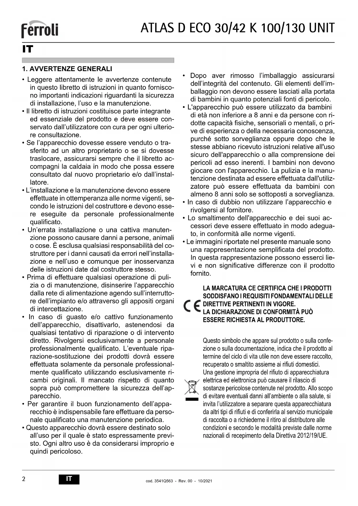 MANUALE UTENTE Atlas D Eco K Unit FERROLI
