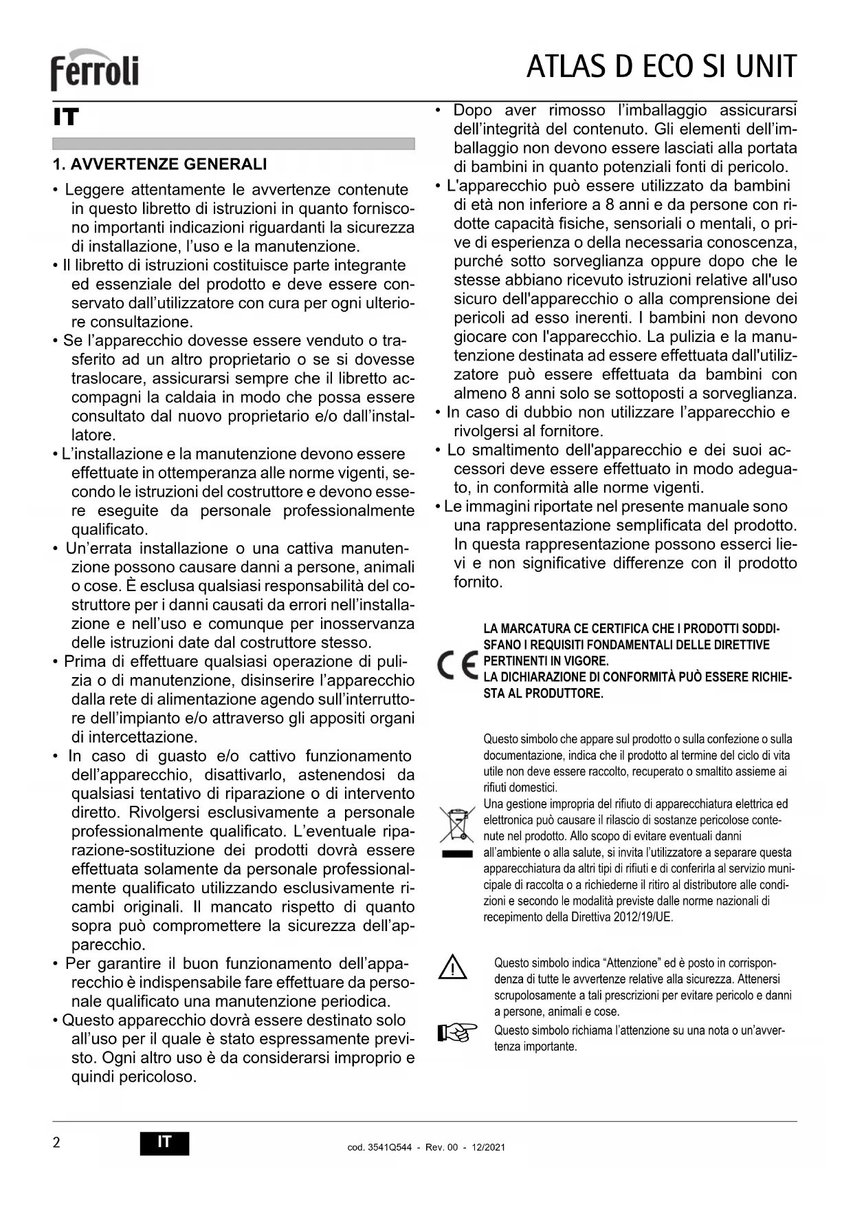 MANUALE UTENTE Atlas D Eco Si Unit FERROLI